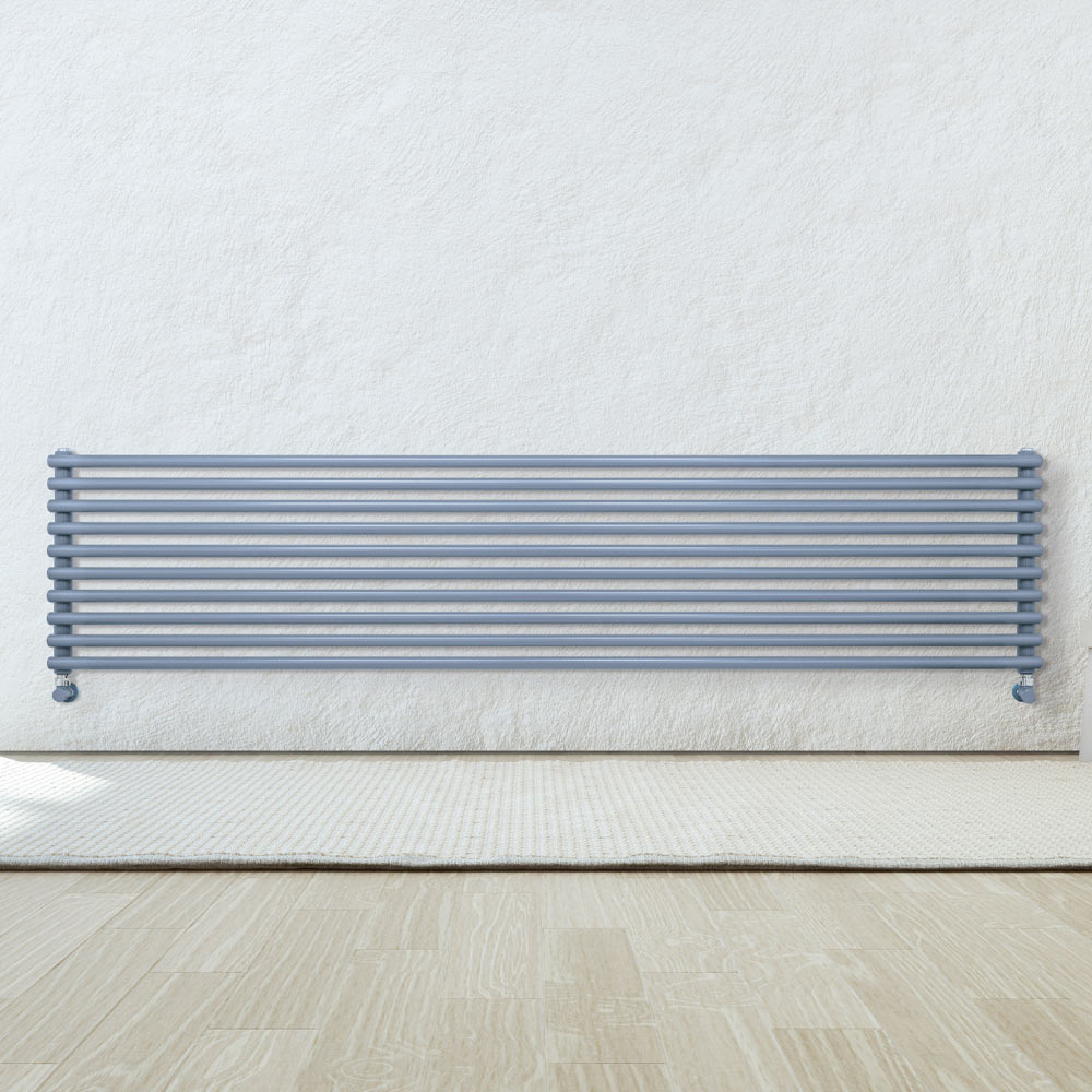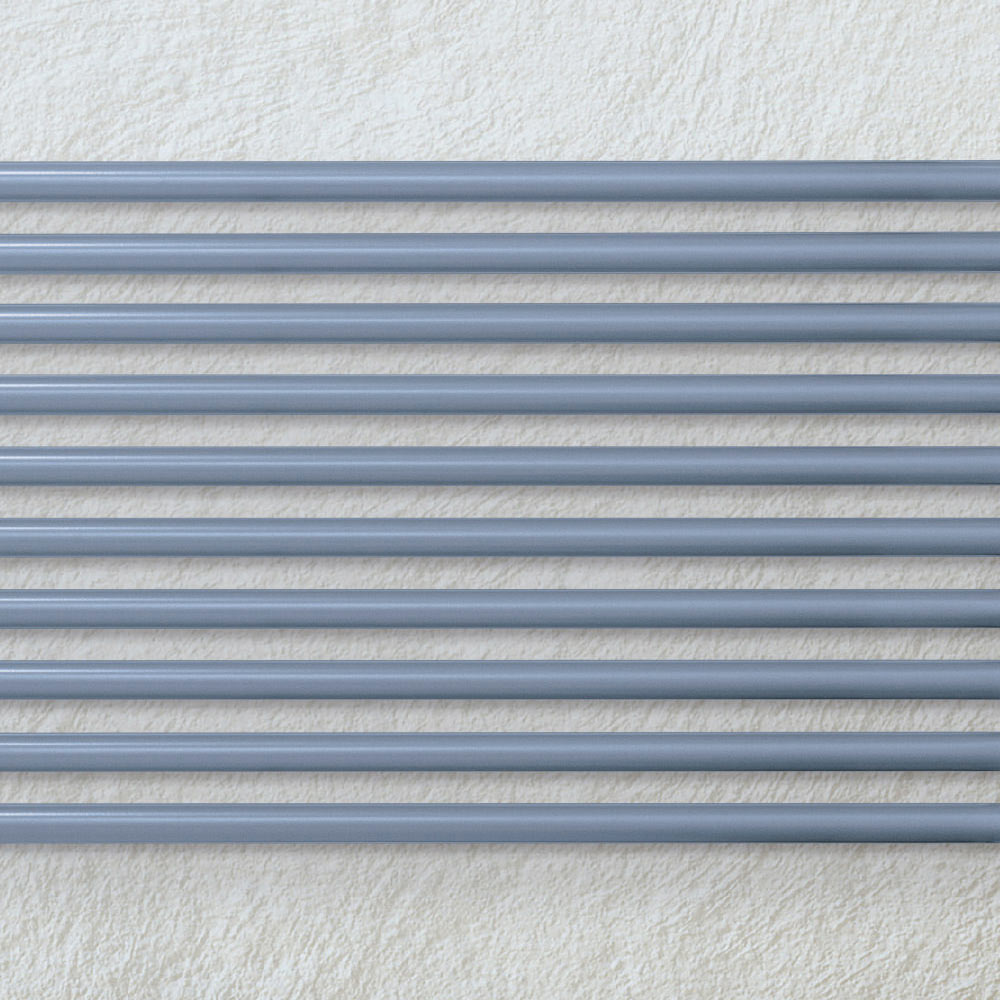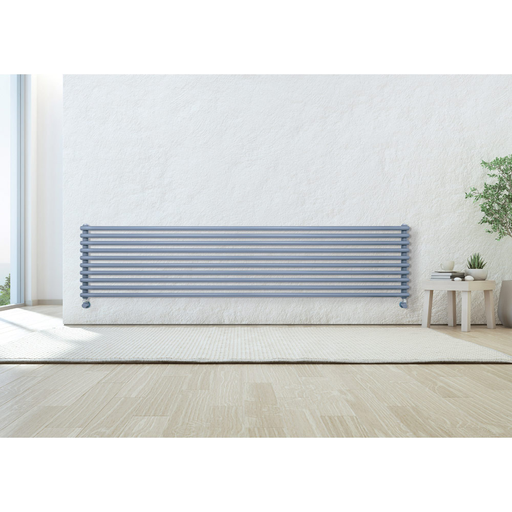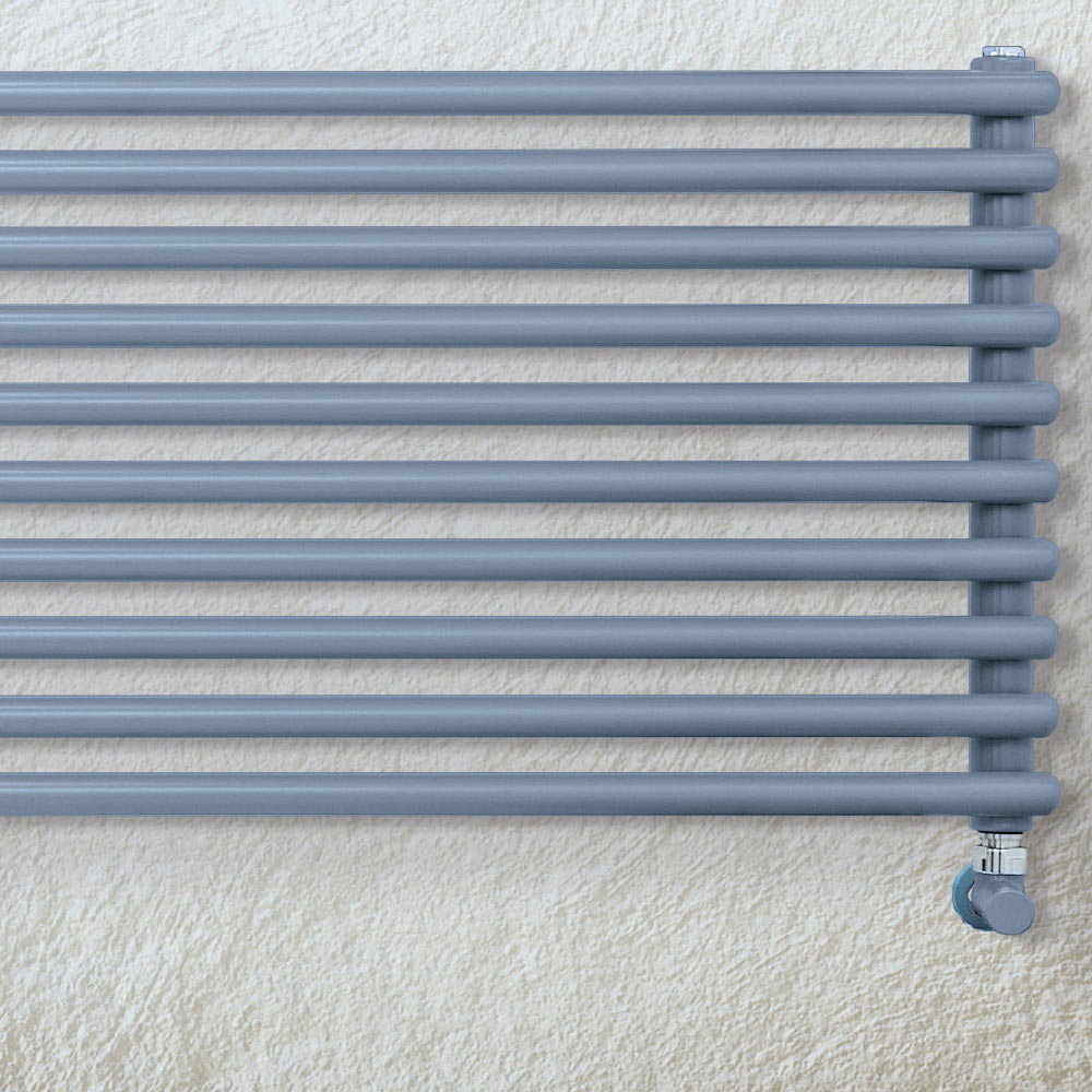 Hydraulic radiator in dove blue carbon steel consisting of a series of horizontal elements with a diameter of 2.5 cm welded onto vertical manifolds with a diameter of 3.5 cm, entirely made in Italy with wall fixing kit, vent valve and blind plug included . This element responds to the needs and desires of an increasingly attentive and demanding user thanks to the choice of the most reliable materials and finishes that make this product unique in its kind and perfect for completing the decor of any environment. The realization takes place entirely in a factory in the province of Treviso, a few kilometers away from Venice to guarantee all the quality of Made in Italy craftsmanship.