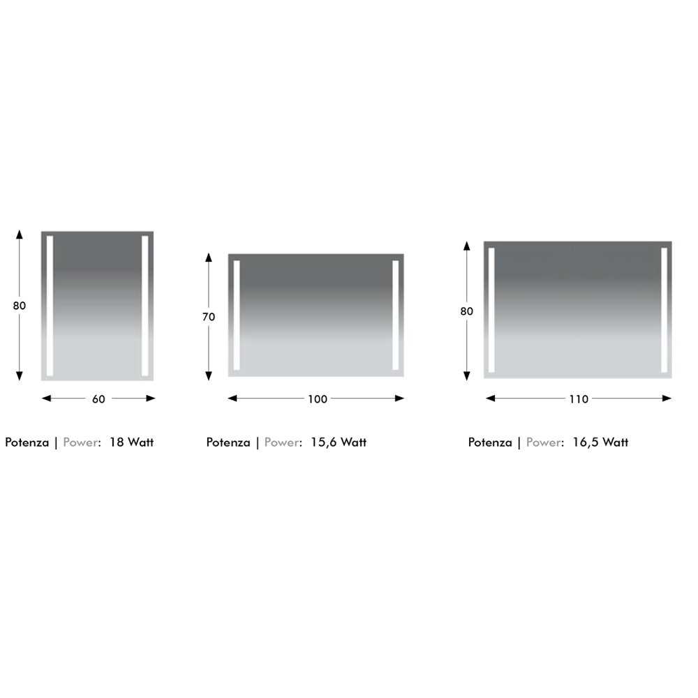 NB: it is also possible to request the mirror in the version with touch switch and / or magnifying mirror illuminated by LED. Contact us for more information or for a quote using the " Request information " form.