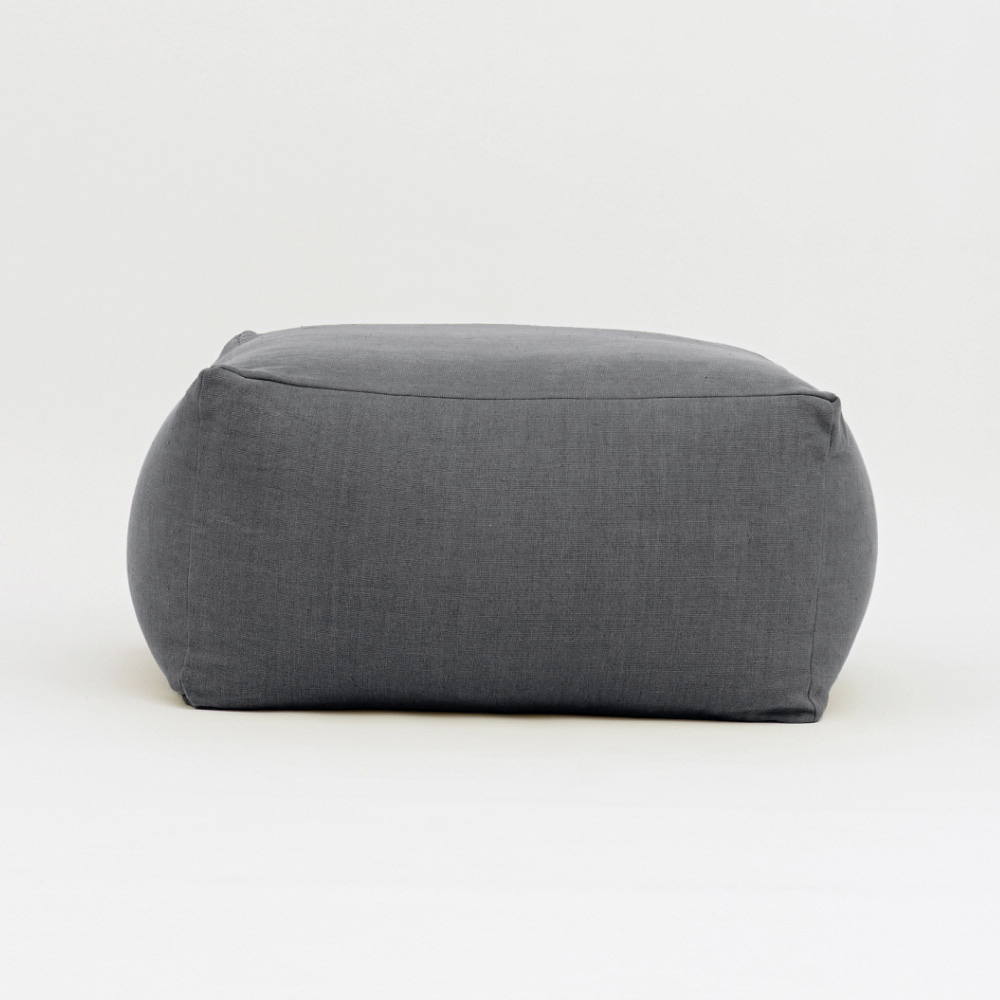 Garden pouf/coffee table made of anthracite-coloured fabric.