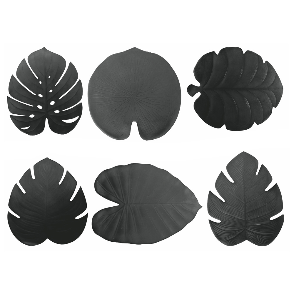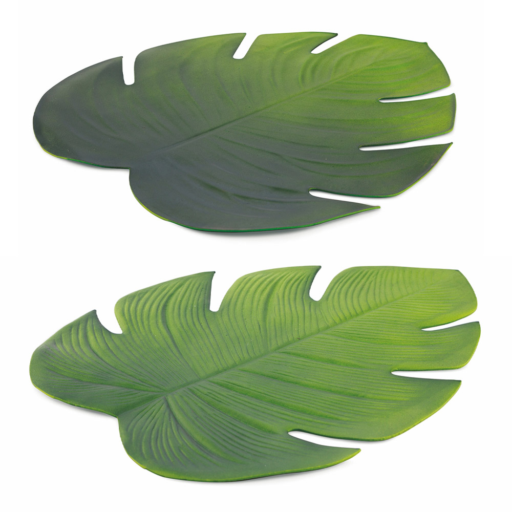 Tropical Leaf Design Plastic Placemats in 6 Green or Black Shapes, 12pcs.