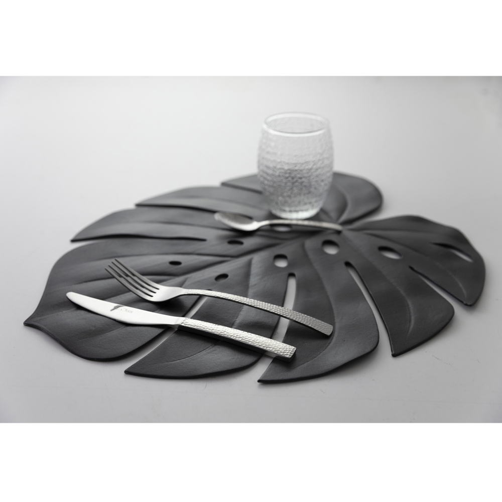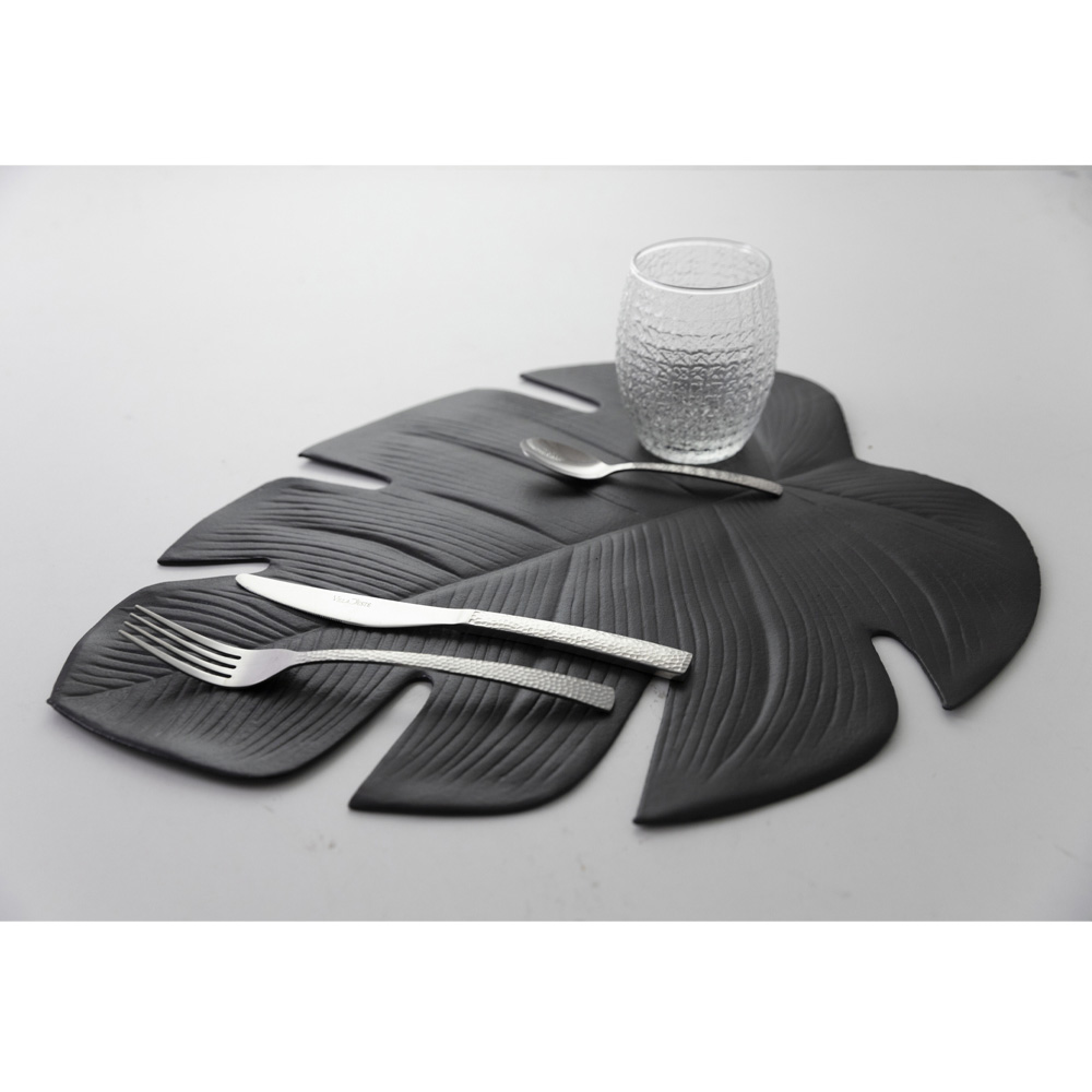 This breakfast placemat setwith an original naturalistic design in the shape of assorted leaves brings imagination to the table. The placemats are inspired by the beauty of tropical fauna, taking us to a natural and contemporary dimension.