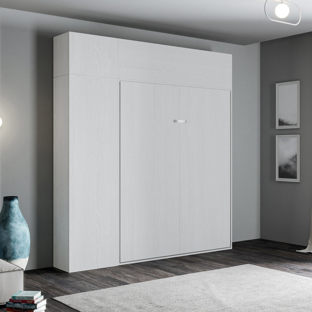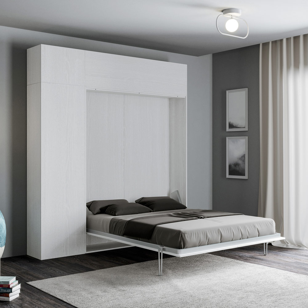 Queen Size Bed with Vertical Foldaway with Column and Wall Unit - Magicompare