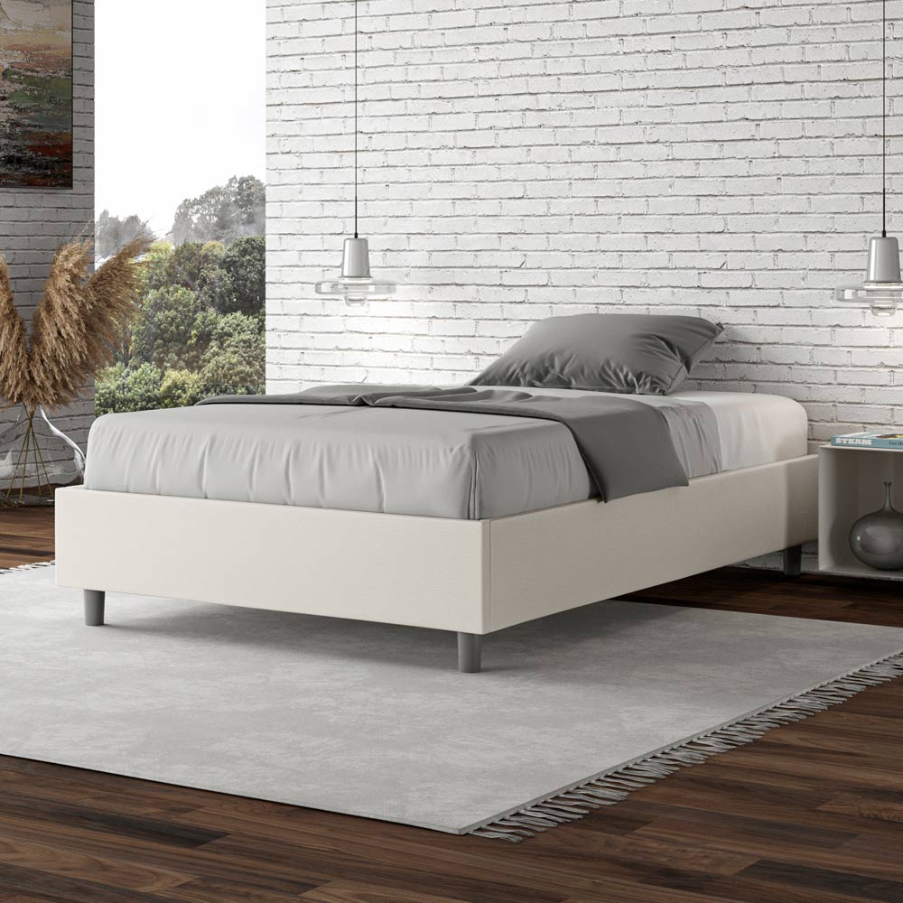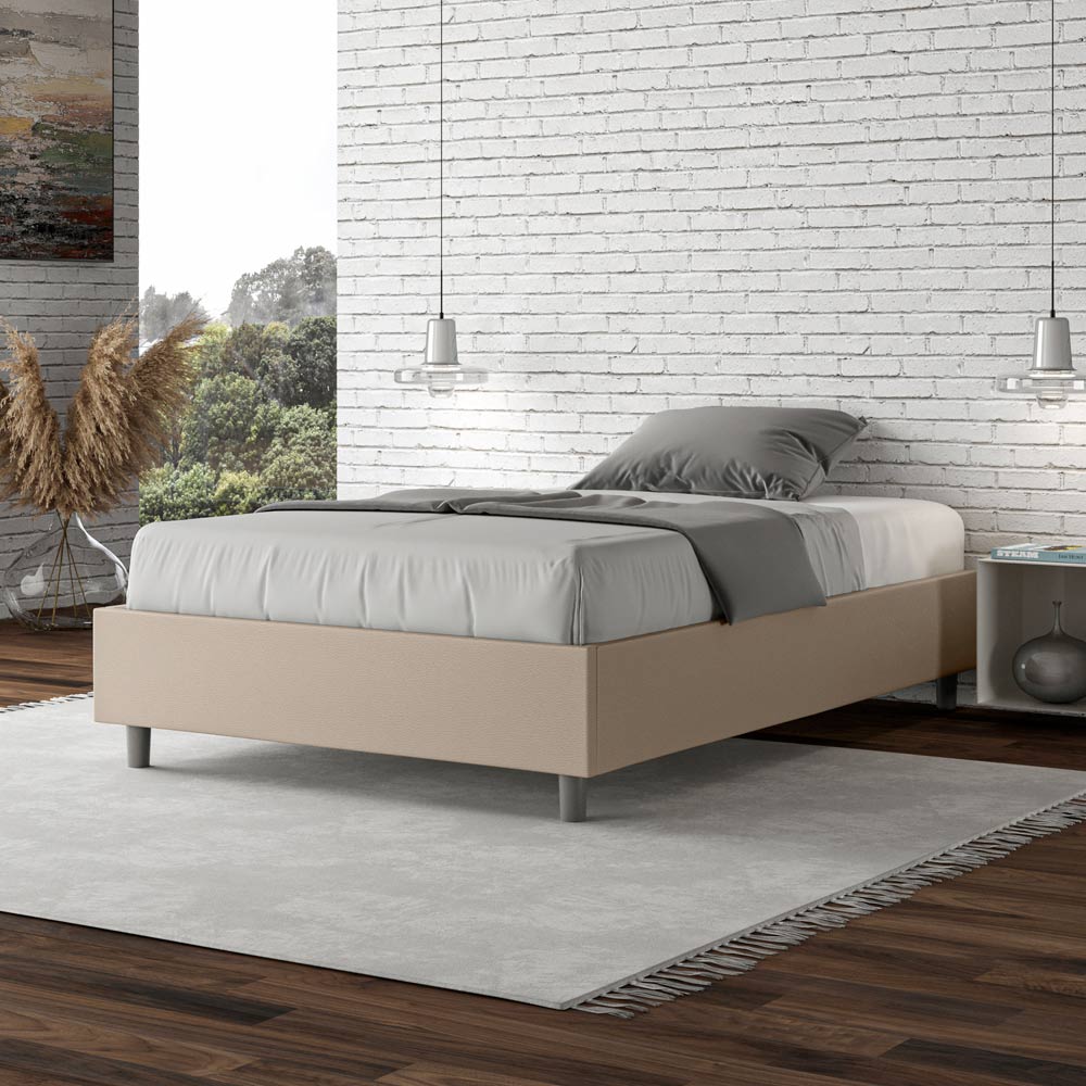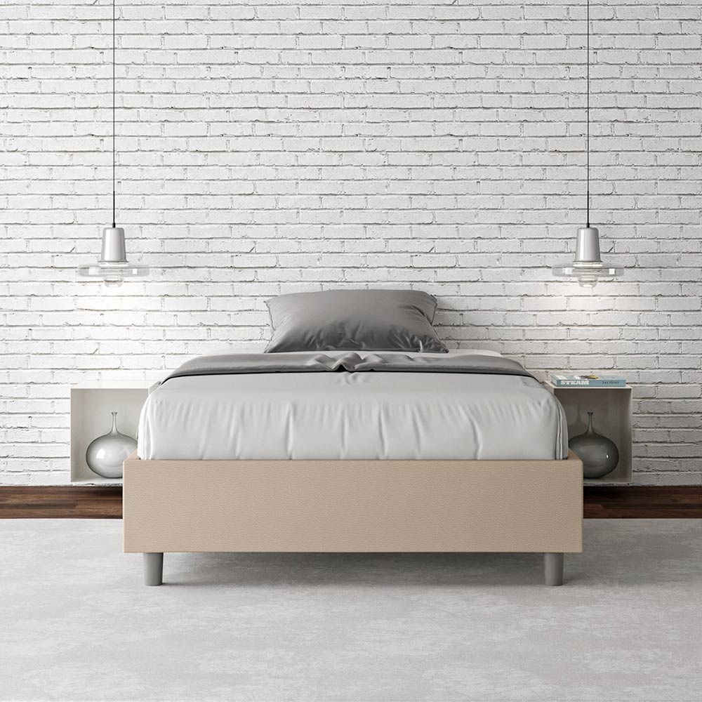 Queen-size bed, 120x200 cm, padded and upholstered in imitation leather, Made in Italy