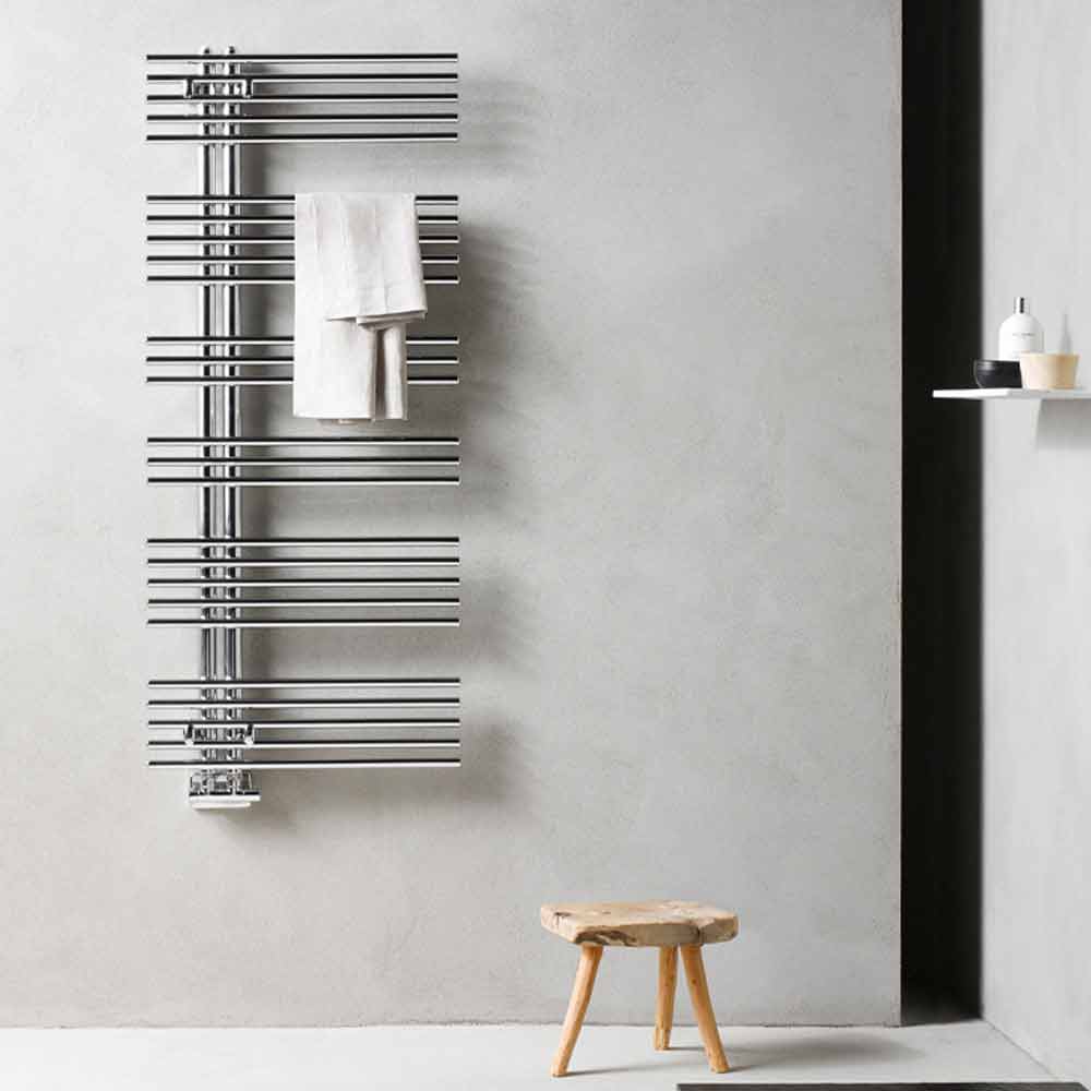 Design hydraulic wall-mounted towel warmer in chromed steel, made in Italy.