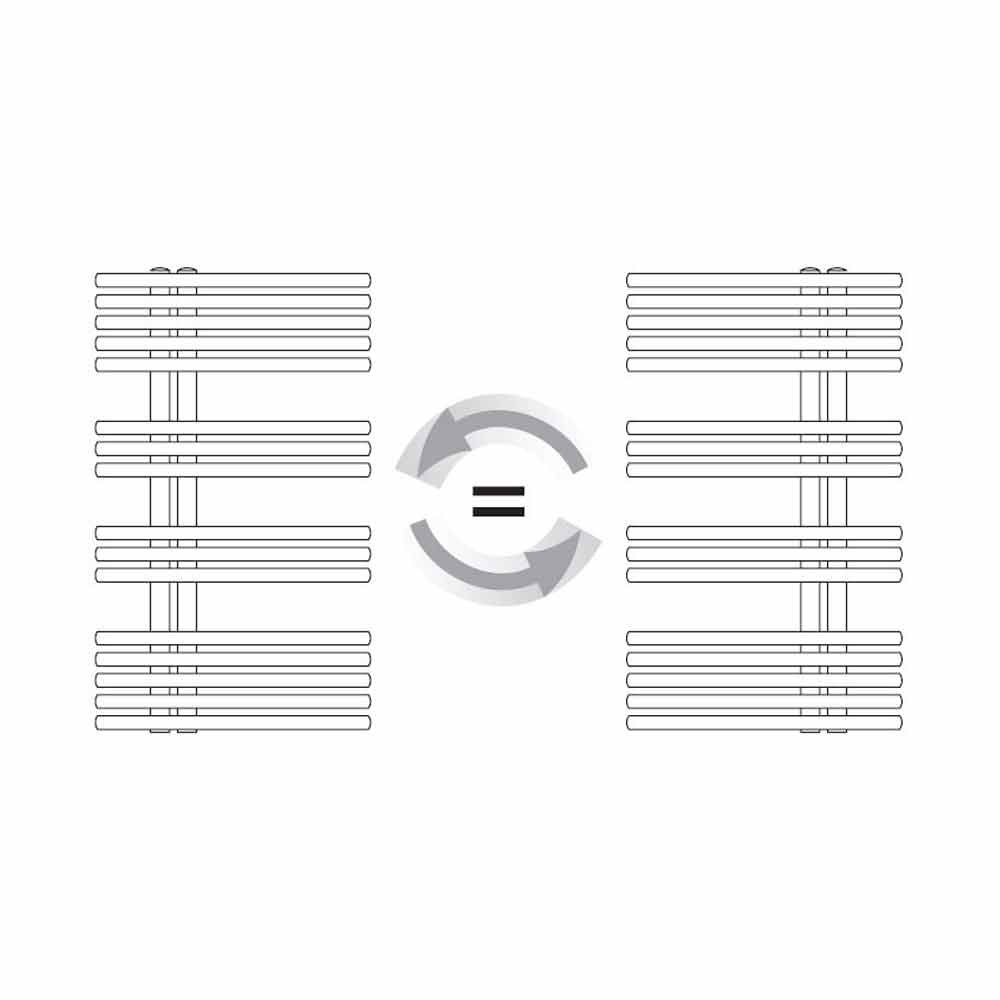 This towel warmer radiator features a chrome design made with 35mm diameter vertical tubes and 25mm diameter horizontal round tubes. Its modern and particular shape makes it reversible and ideal for furnishing the most recent bathrooms, giving a touch of originality.