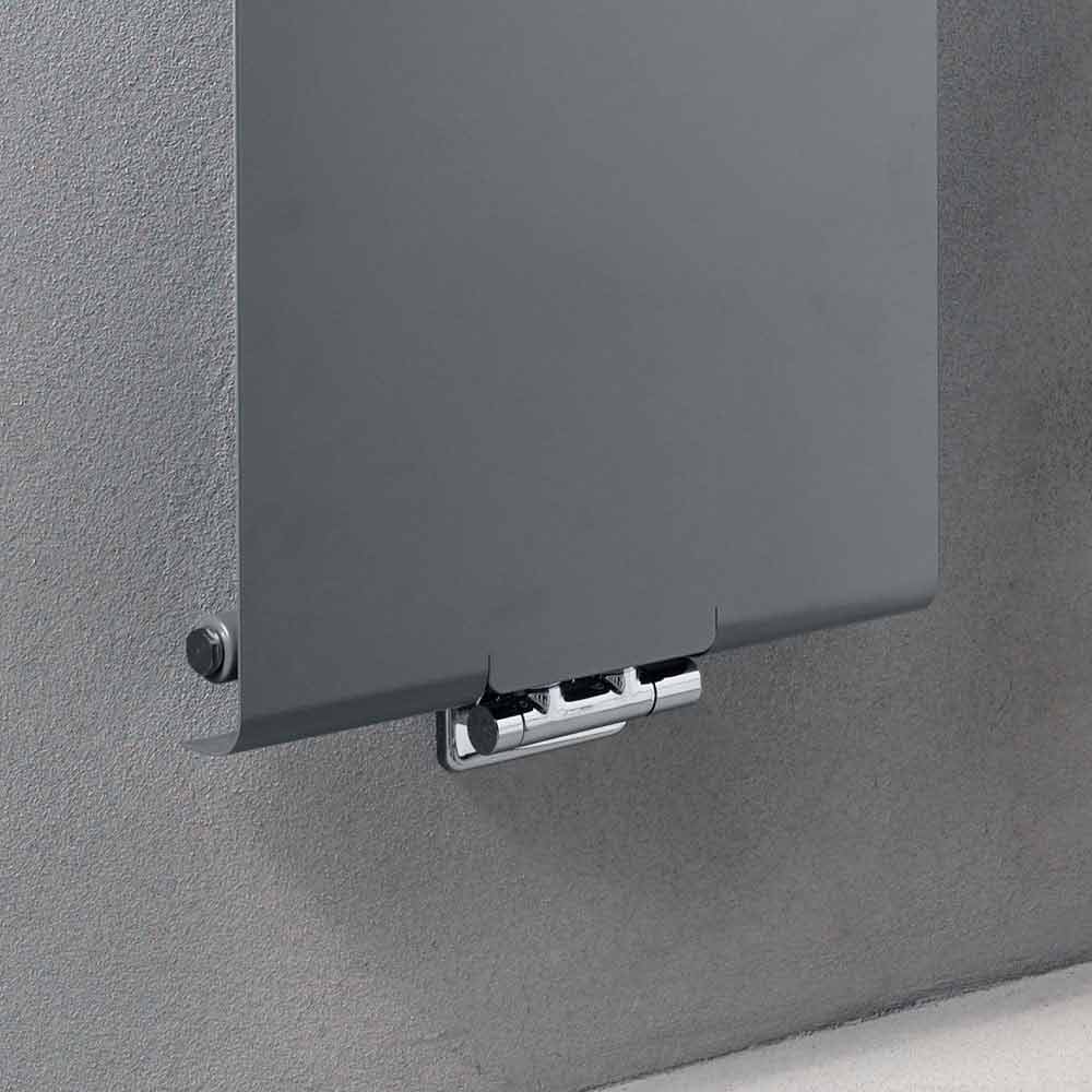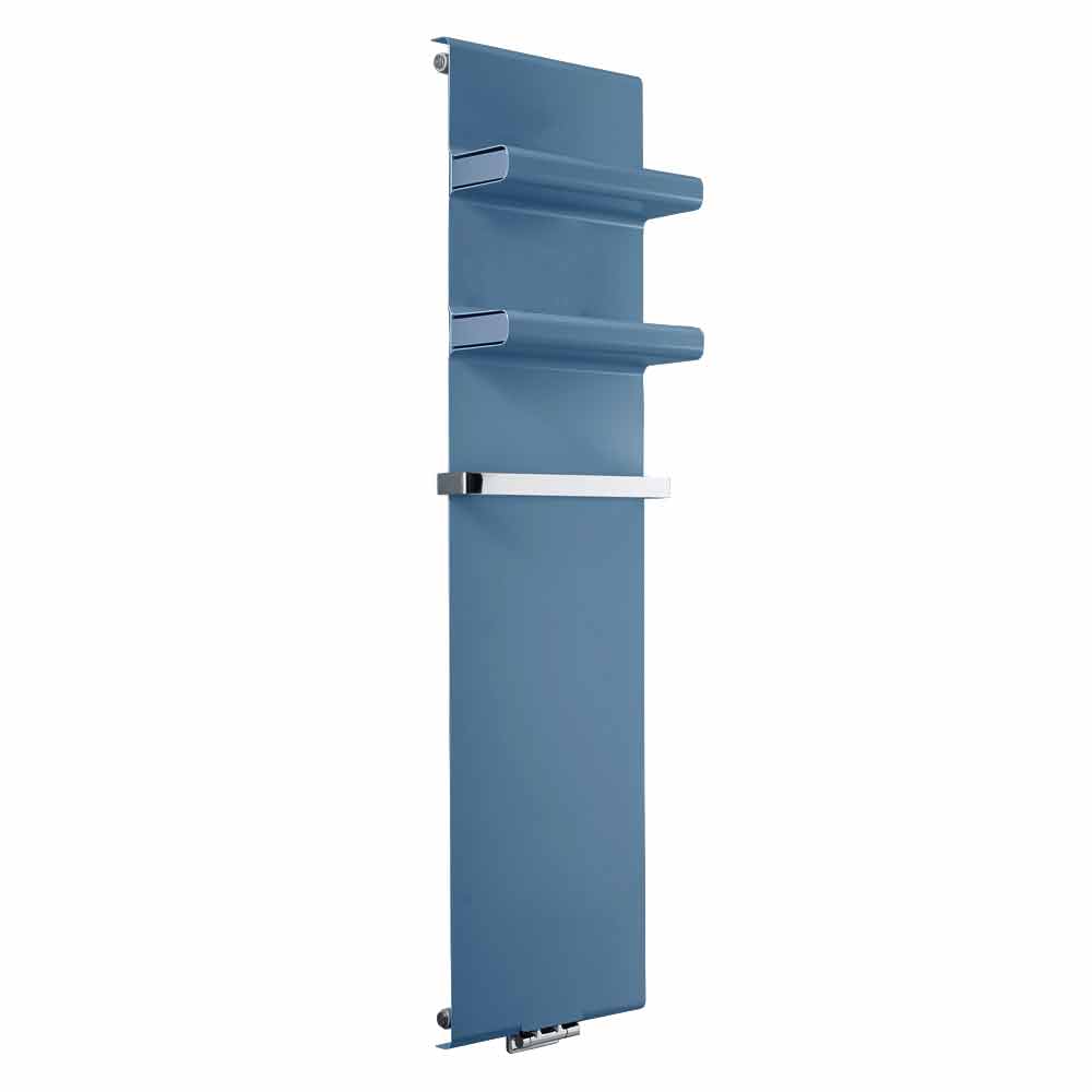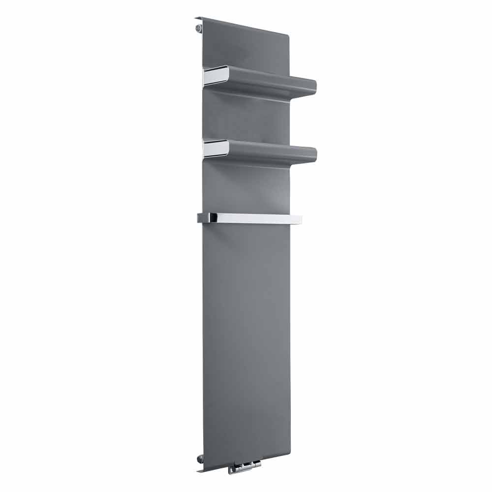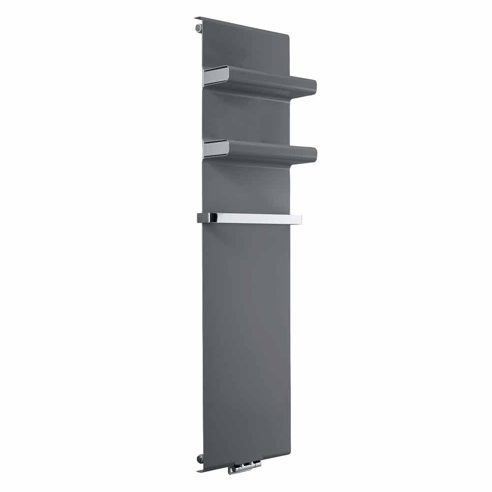 hydraulic radiant plate features a modern and minimal design with practical and elegant integrated shelves with cover included and chrome towel bar, which extends the radiator width by 4 cm.