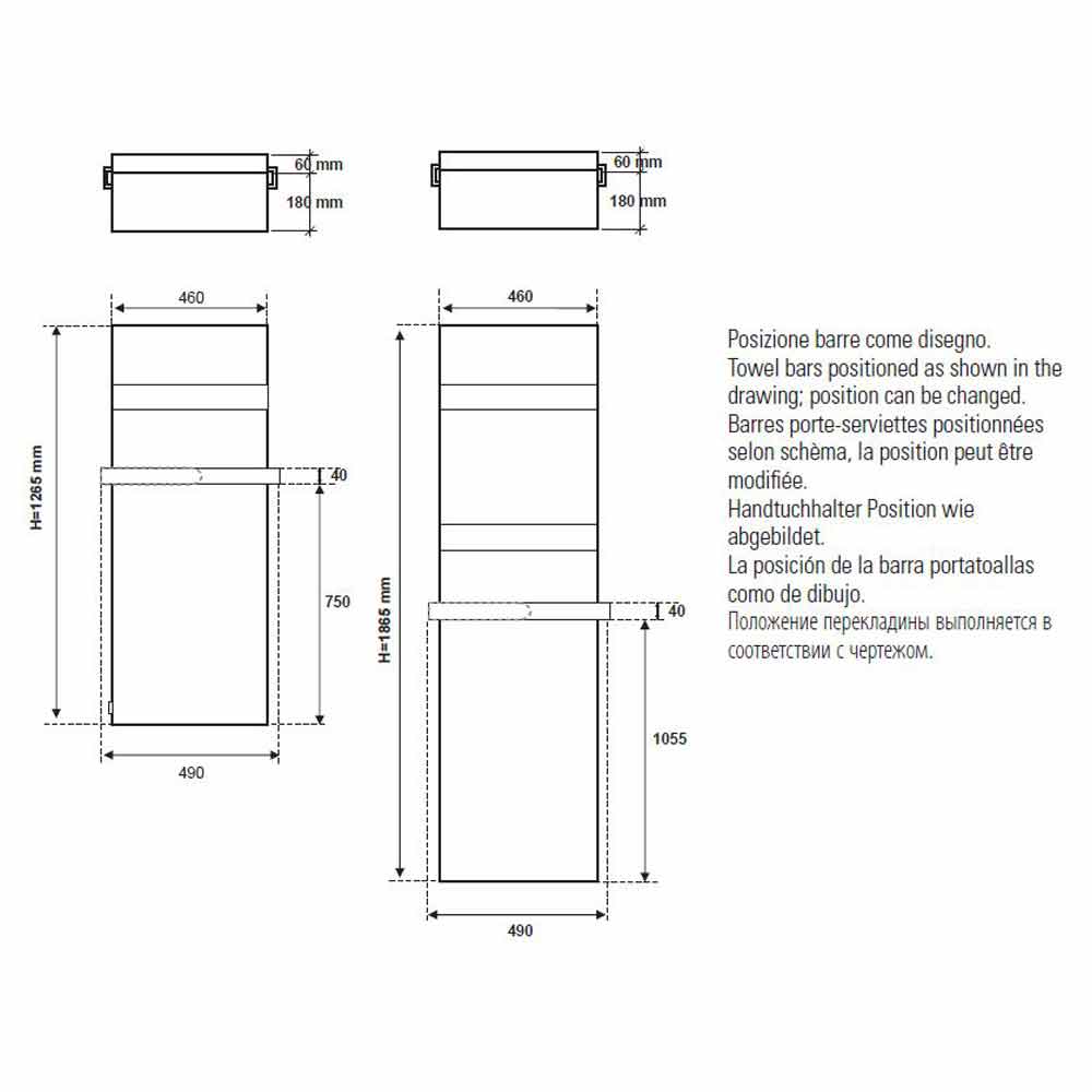 - H 1865 x L 460 x Inter. 1760 mm x Yield w (Δt50 *) 719; Yield w (Δt30 *) 379; Output w (Δt26 *) 316 (2 shelves).