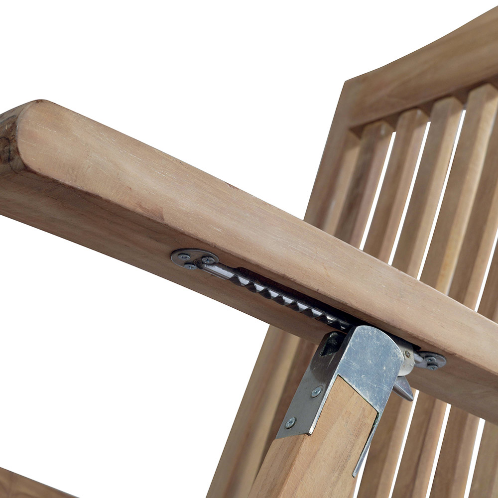 The armchair is adjustable , allowing you to find the perfect position for maximum comfort, whether you want to read, sunbathe or take a nap. The ergonomic slats offer optimal support, while the solid teak structure ensures stability and sturdiness.