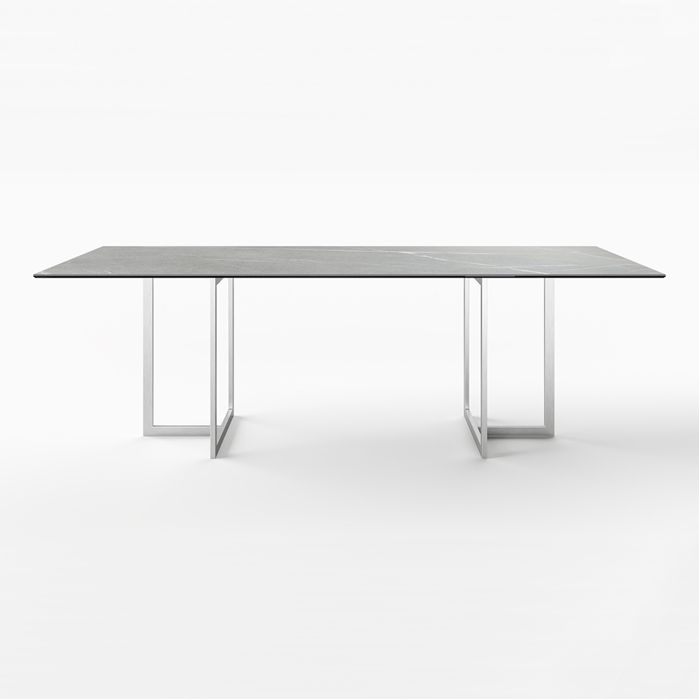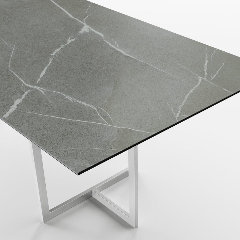 Dining table in stone effect porcelain stoneware and stainless steel Made in Italy.