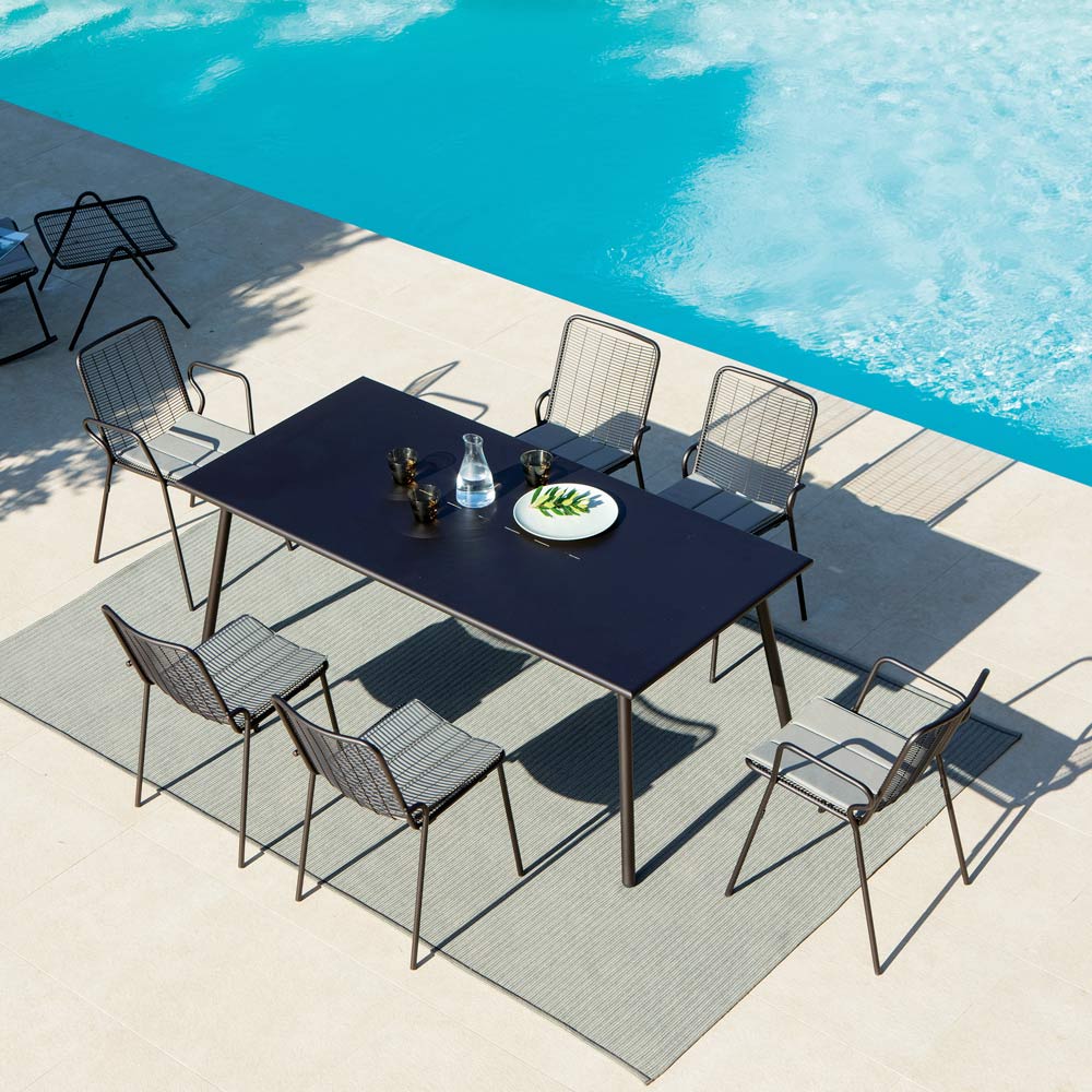 Garden table with galvanized steel structure produced by Italian craftsmen who give the product a 100% Made in Italy quality. This furnishing accessory is made with materials designed to have a high atmospheric resistance to corrosive agents. Its design is modern and refined in its practicality and functionality . The harmonious and balanced proportions match its sober and elegant colors.