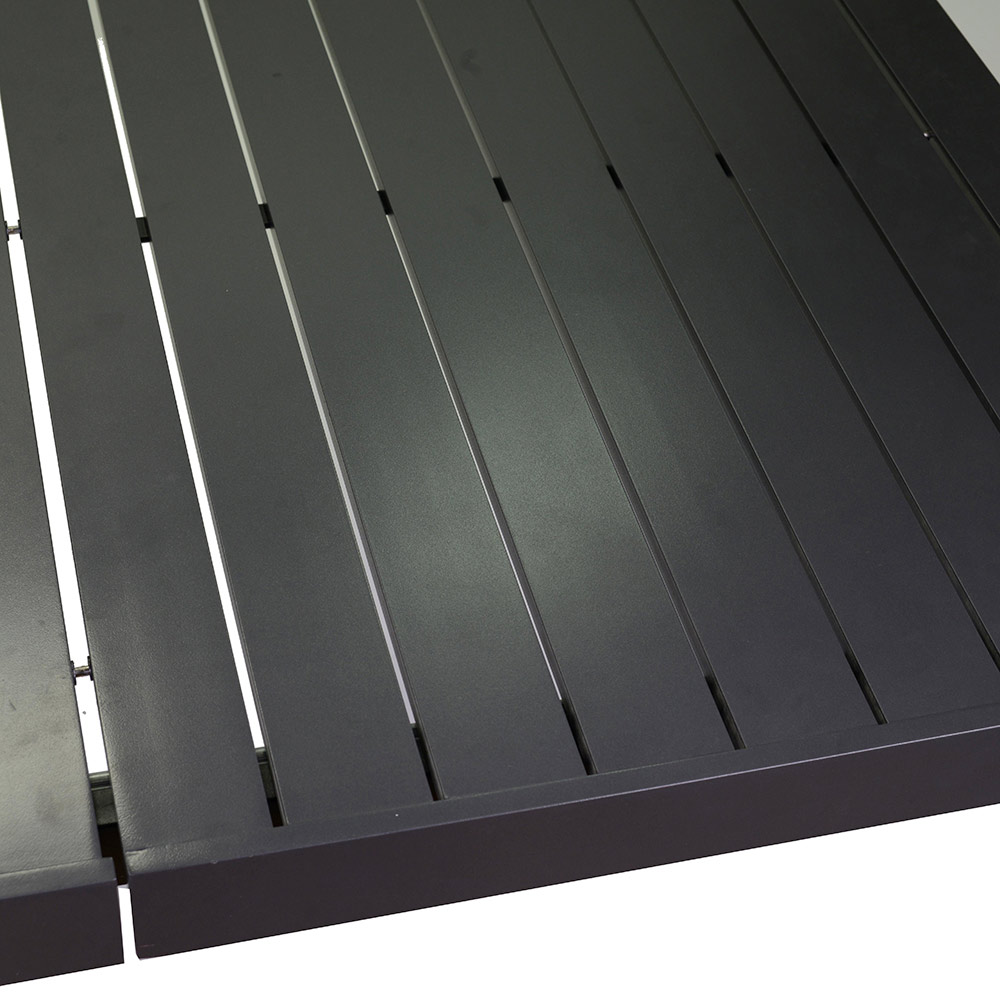 The sturdy aluminum construction ensures durability and weather resistance, maintaining its impeccable appearance season after season. The finish adds a touch of elegance and modernity, making it a versatile and eye-catching piece of furniture.