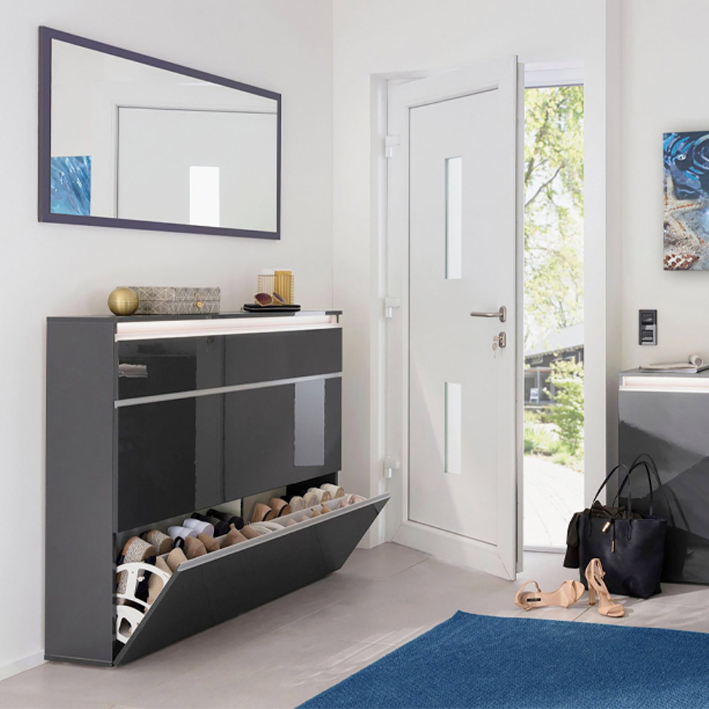 Made with a sustainable melamine wood panel, the frame is lacquered and glossy available in two finishes. Consult the fixing instructions by downloading them from the appropriate "Documents" section.