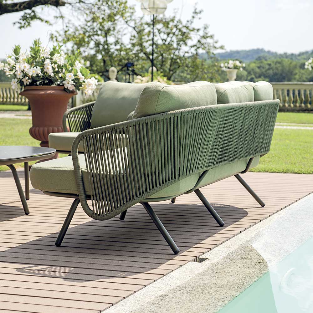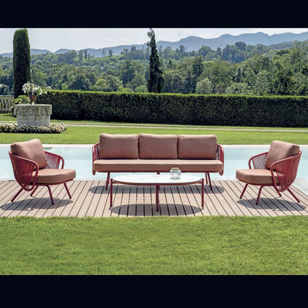 This garden lounge è the ideal solution for those seeking a perfect balance between elegance and comfort. Consisting of armchairs and sofa with upholstered cushions and a sturdy coffee table, this set è the ideal addition to enjoy relaxing moments outdoors. The modern design and clean lines fit perfectly in any outdoor setting, from spacious patios to cozy gardens.