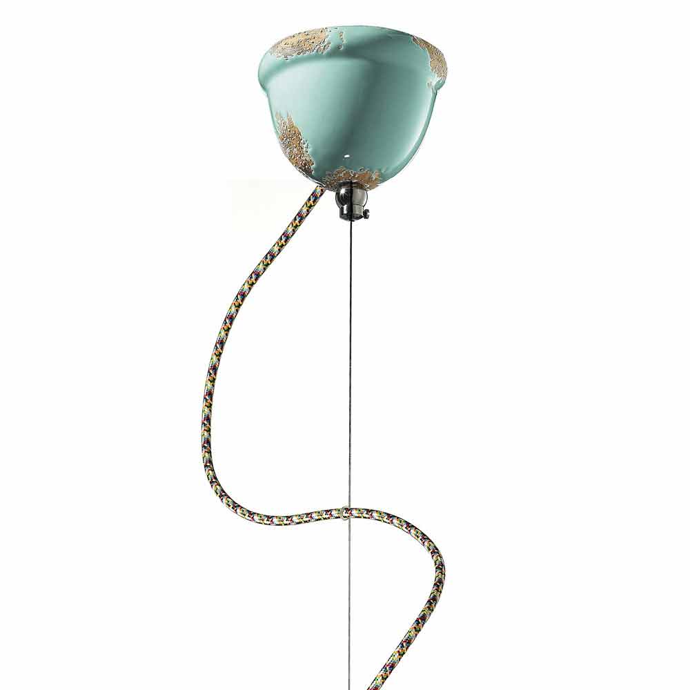 Retro style pendant lamp by Ferroluce Linear shapes and dimensions designed to give character to the most minimal furnishings, but able to integrate even with the most refined furnishings, able to evoke the industrial aesthetics of the twentieth century. The surfaces describe an accurate study of color and colors. The geometries can be reinterpreted through surfaces covered with soft glazes with a sanded effect and elegant shades, by the use of glazes capable of giving the surface a tactile and visual lived aspect, and to retro colors, or by using stylized flowers in perfect Shabby style that spread on the surfaces recreating a fascinating fresco effect, this damask finish is obtained through chromatic details and small technical details in the decoration, thus enhancing even the flat surfaces. Ideal for environments with an urban style and a vintage flavor. Essential, raw design, designed to diffuse a full and reassuring light. Small details for a great effect with an antique flavor.