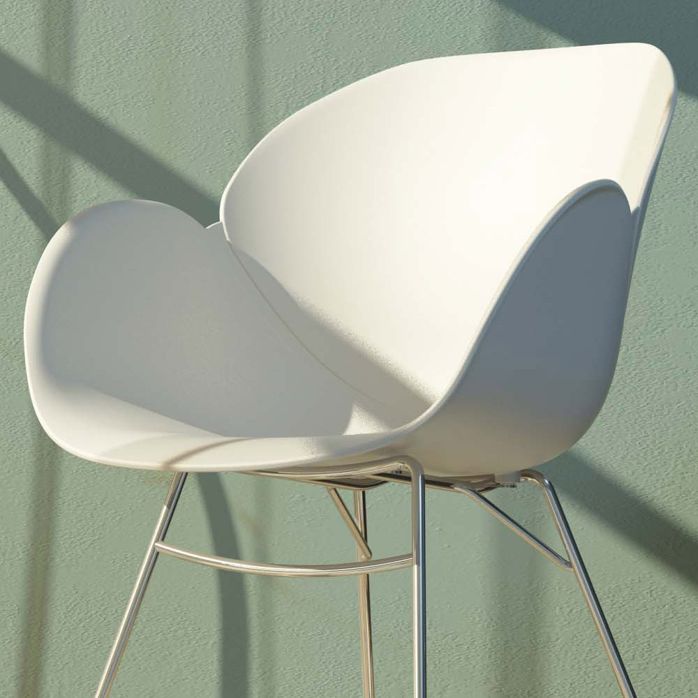 Rocking chair for living room consisting of a chromed metal structure and white polypropylene shell. An original piece of furniture with an exclusive aesthetic , ideal for completing your living area with personality and an innovative touch . The particular rounded shape of the shell is enveloping and comfortable thus offering a welcoming seat and maximum comfort together with a refined and creative design .