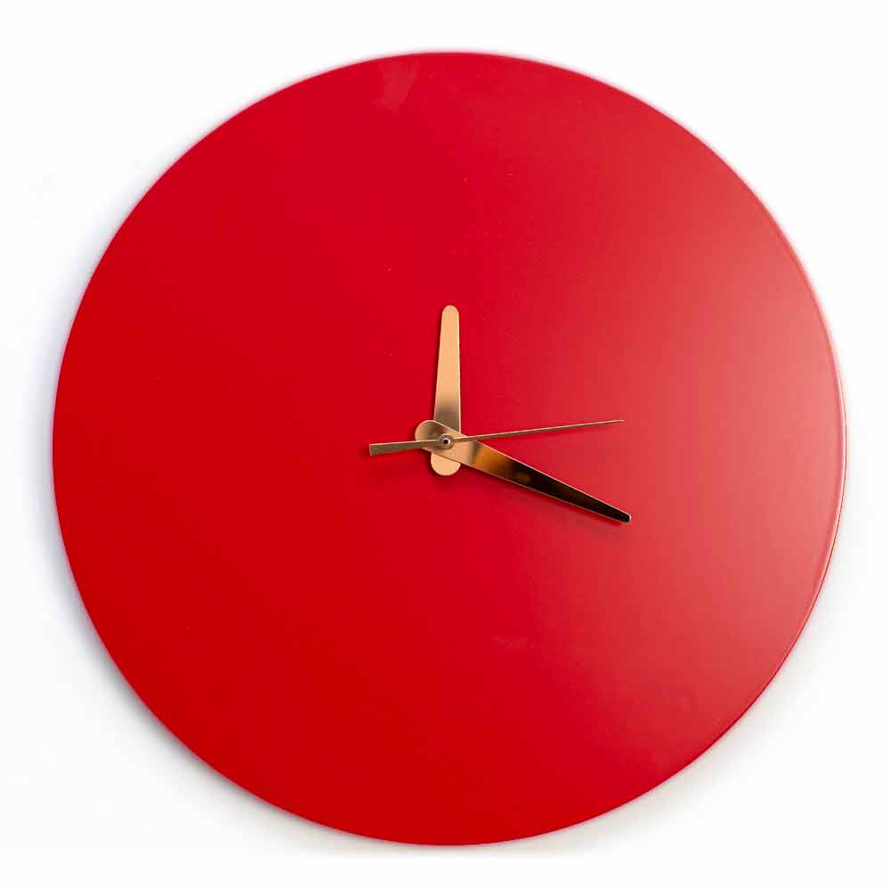 It is a minimal clock but with bright colors that lends itself to decorating different environments, in particular it gives a pinch of liveliness and modernity where white or gray predominate. The peculiarity is given by the detail of the hands , which have an original and different color compared to the base: a touch of bronze style that will not go unnoticed.