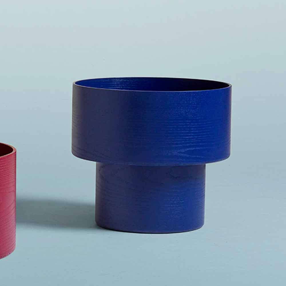 Round Bedside Table of Modern Design in Bordeaux or Blue Wood - Vinnie