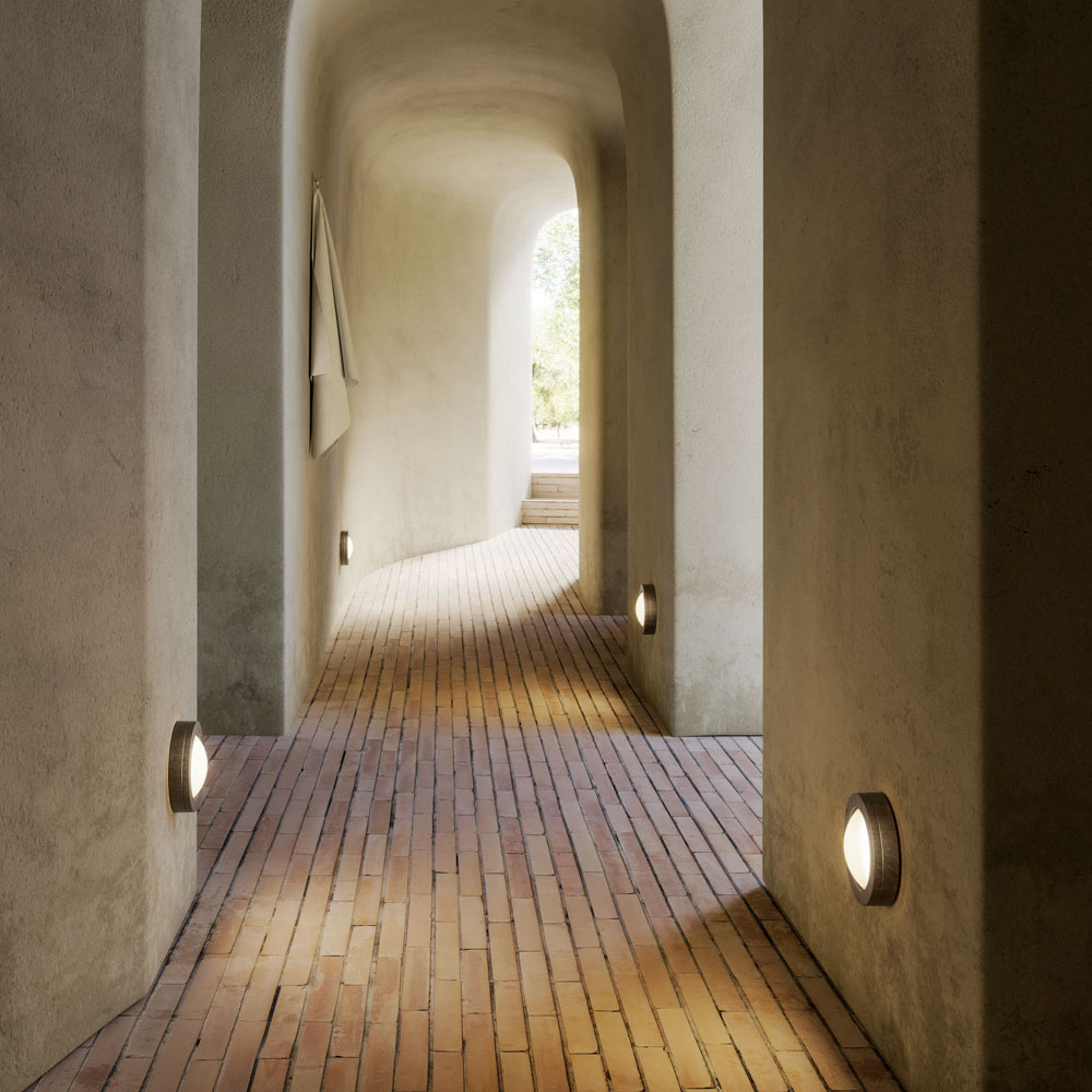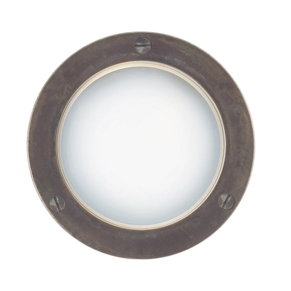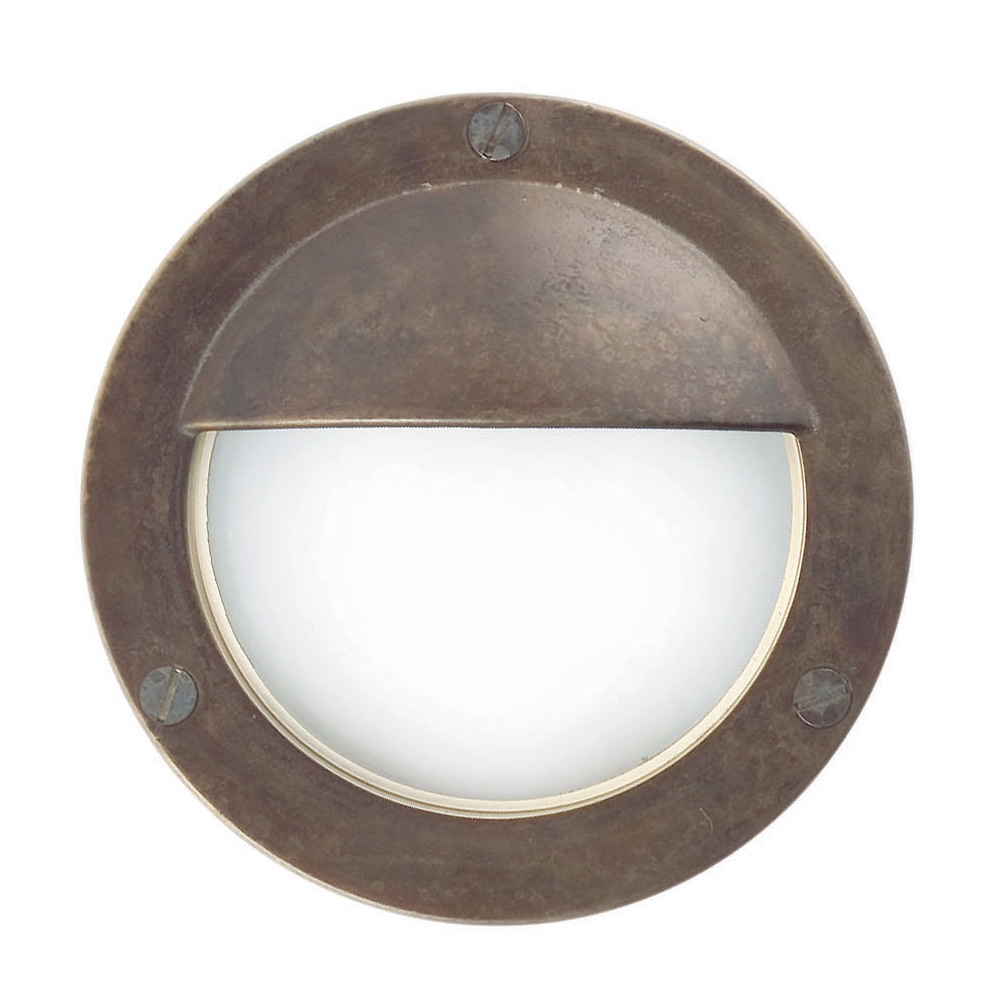 Wall light made of antique brass and satin glass entirely Made in Italy. The maritime style is the leitmotif of the Barca collection, born from the desire to satisfy specifically technical needs, and then developed as an autonomous design. The collection includes wall lamps, sconces and step lights with a balanced appearance, made of antique brass.