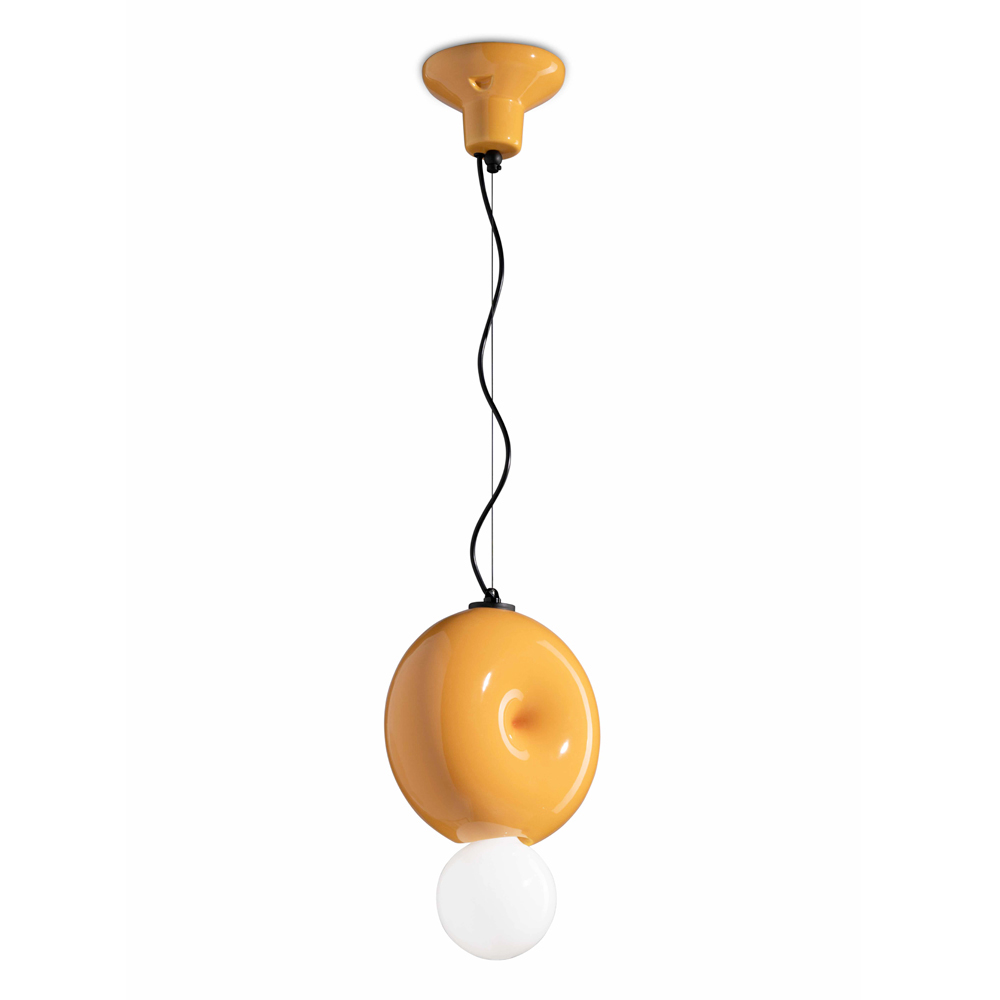 This pendant lamp is a splendid example of how design can elevate a living or working space. The ceramic base is modeled with care that reflects the mastery of Italian artisans . The design is contemporary but with a touch of nostalgia, making it ideal for those who love the combination of modernity and retro warmth.