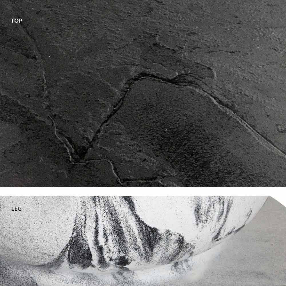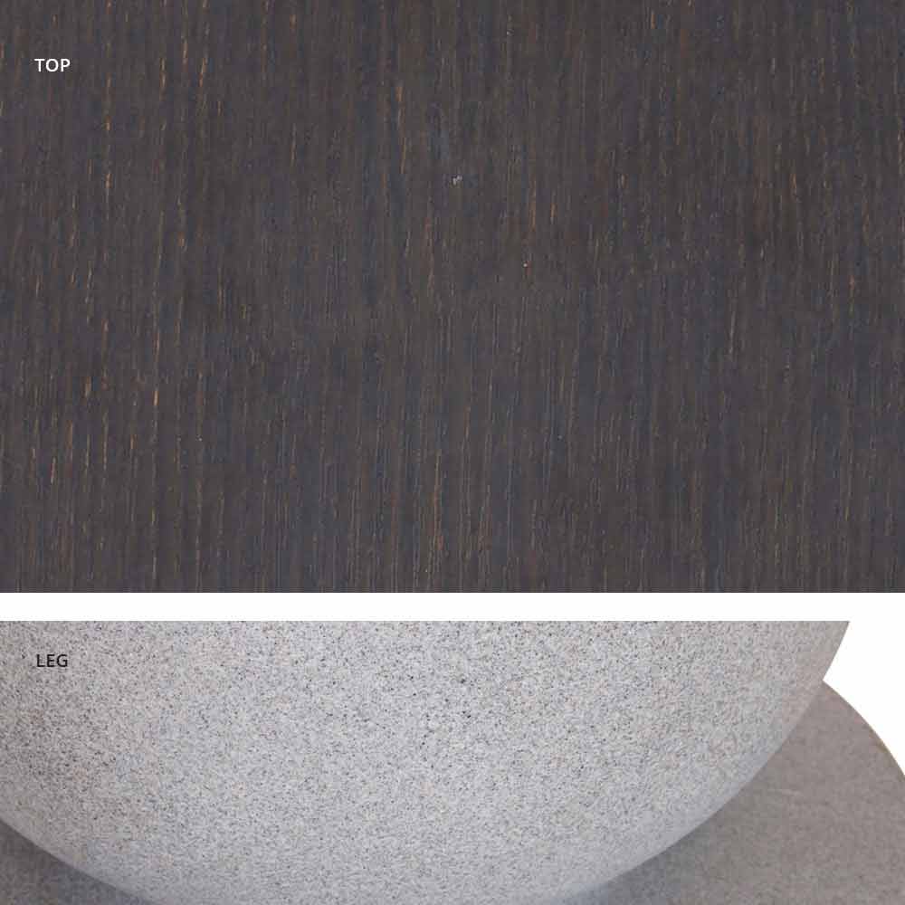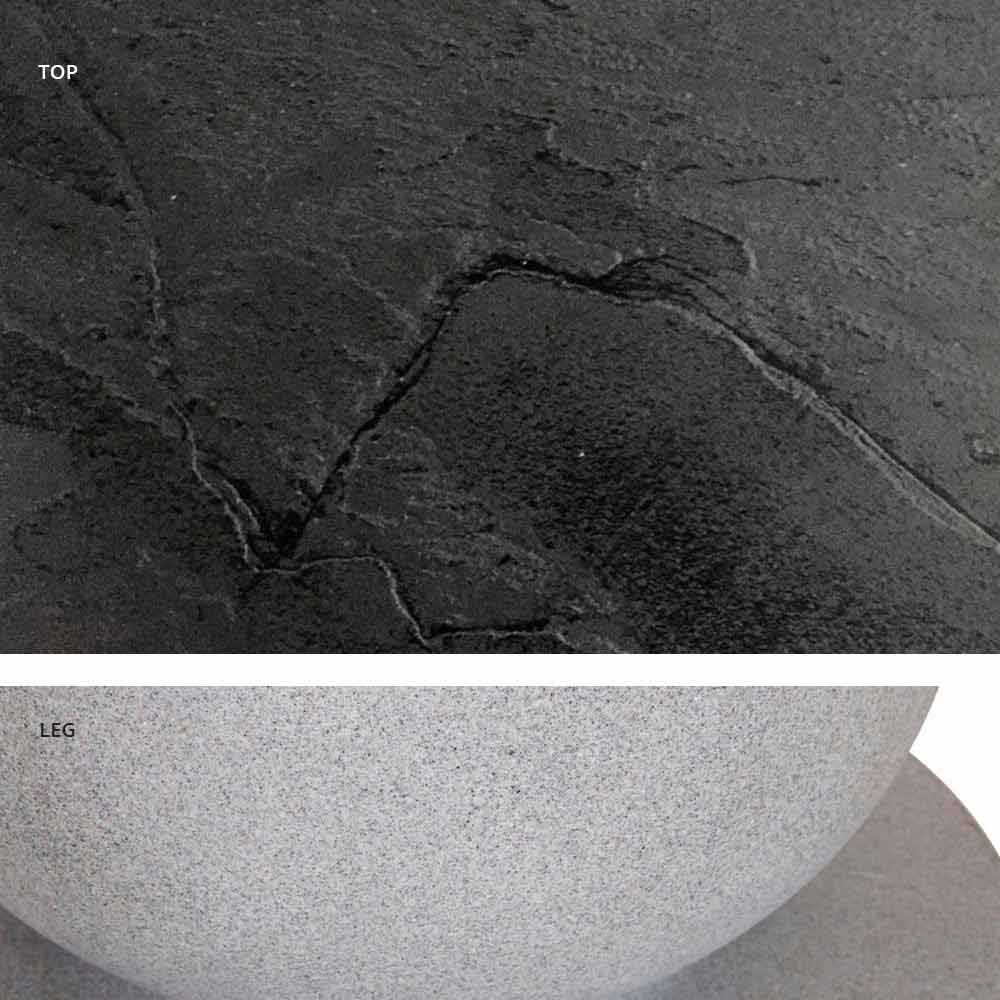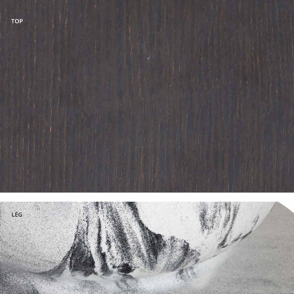 - jet black base and wood / slate / cement / calacatta top;