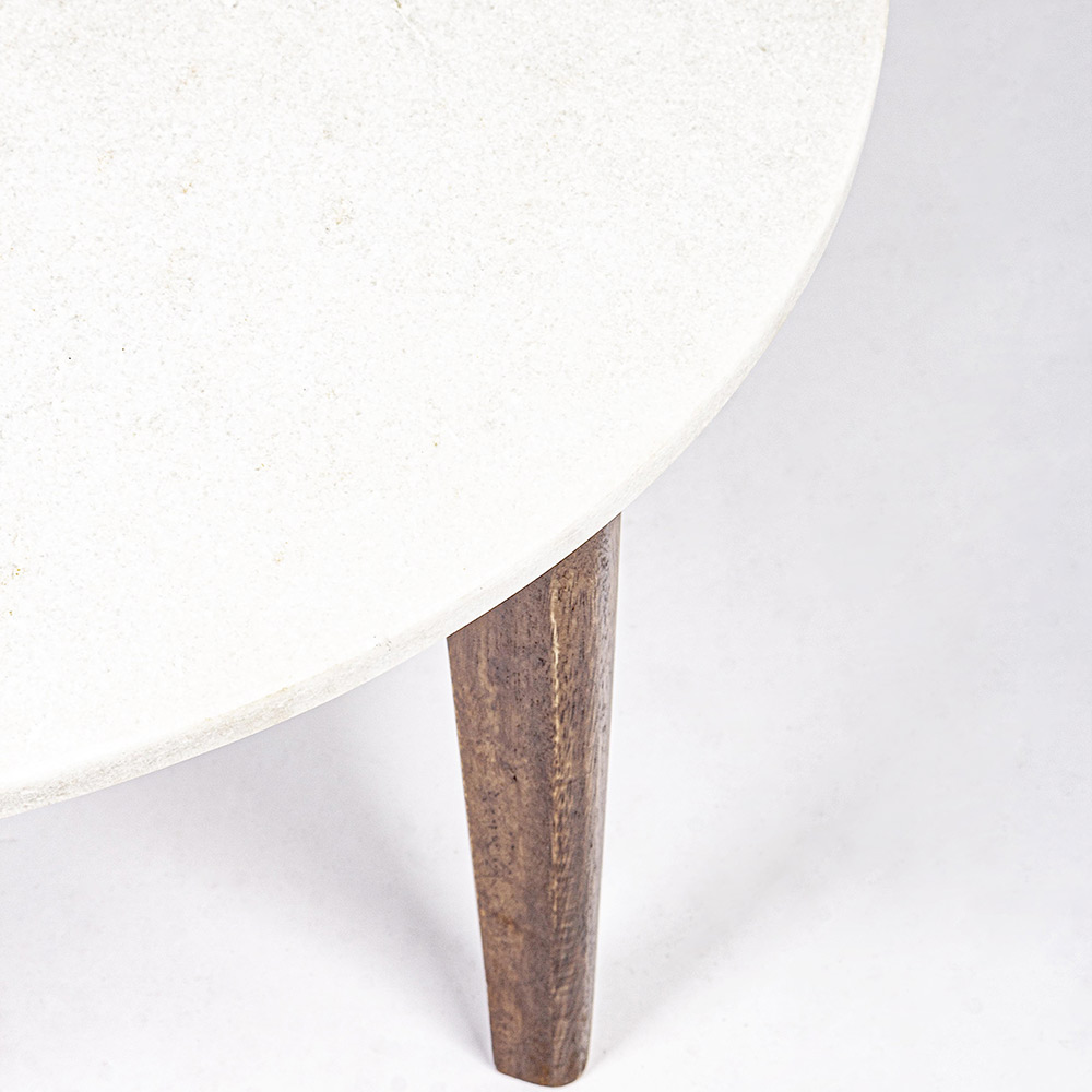 Round Coffee Table for Living Room in Marble and Mango Wood - Desiderio