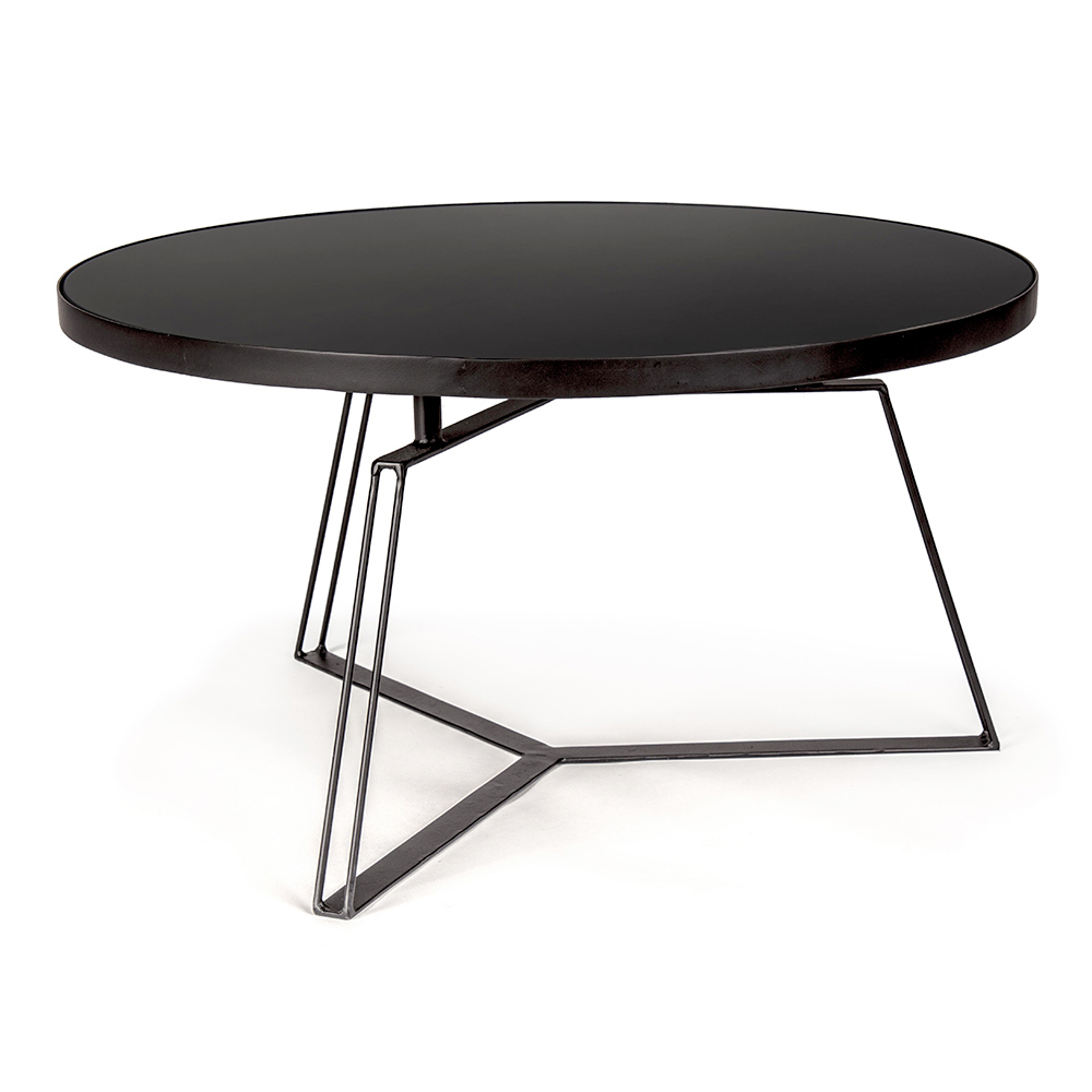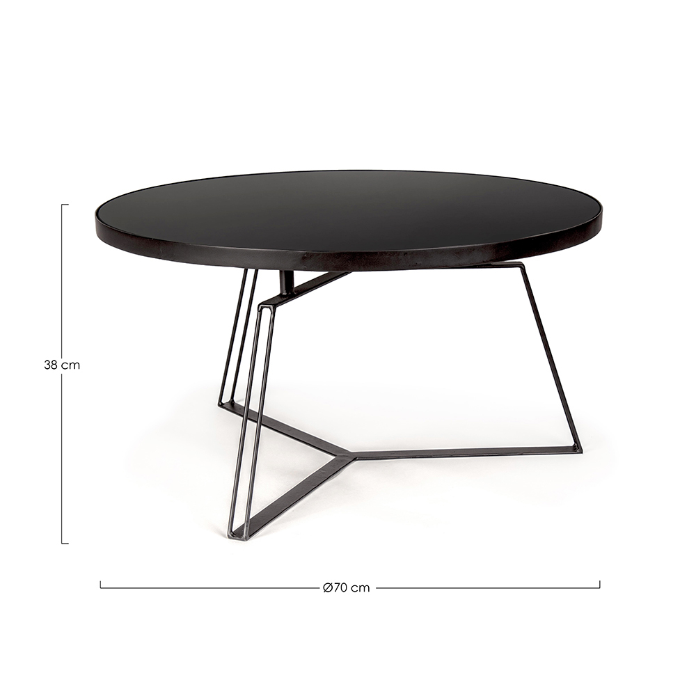 Round Coffee Table in Black Steel and Glass Top 2 Sizes - Zanzino