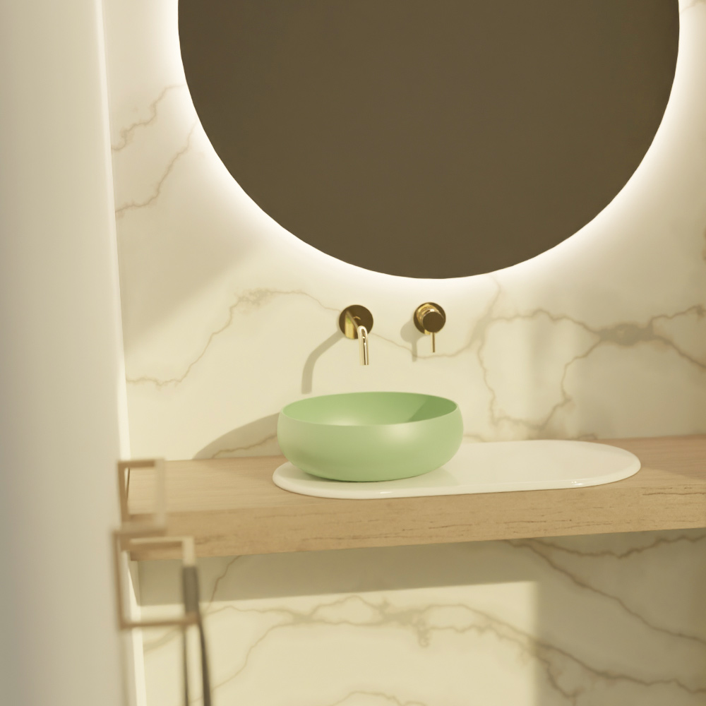 This round ceramic sink is a masterpiece of minimalist design and functional elegance. Its perfectly circular shape, combined with the delicate shades available, invokes a feeling of serenity and purity, transforming the bathroom into a sanctuary of tranquility and style.