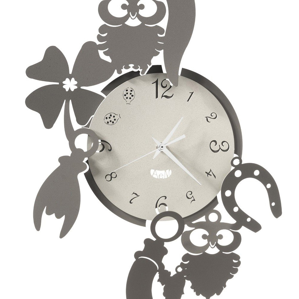 Round design iron wall clock with lucky charms in 3 finishes made in Italy.