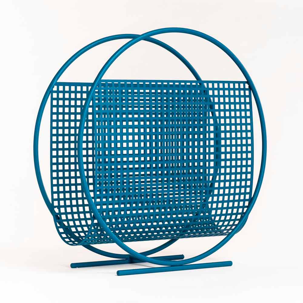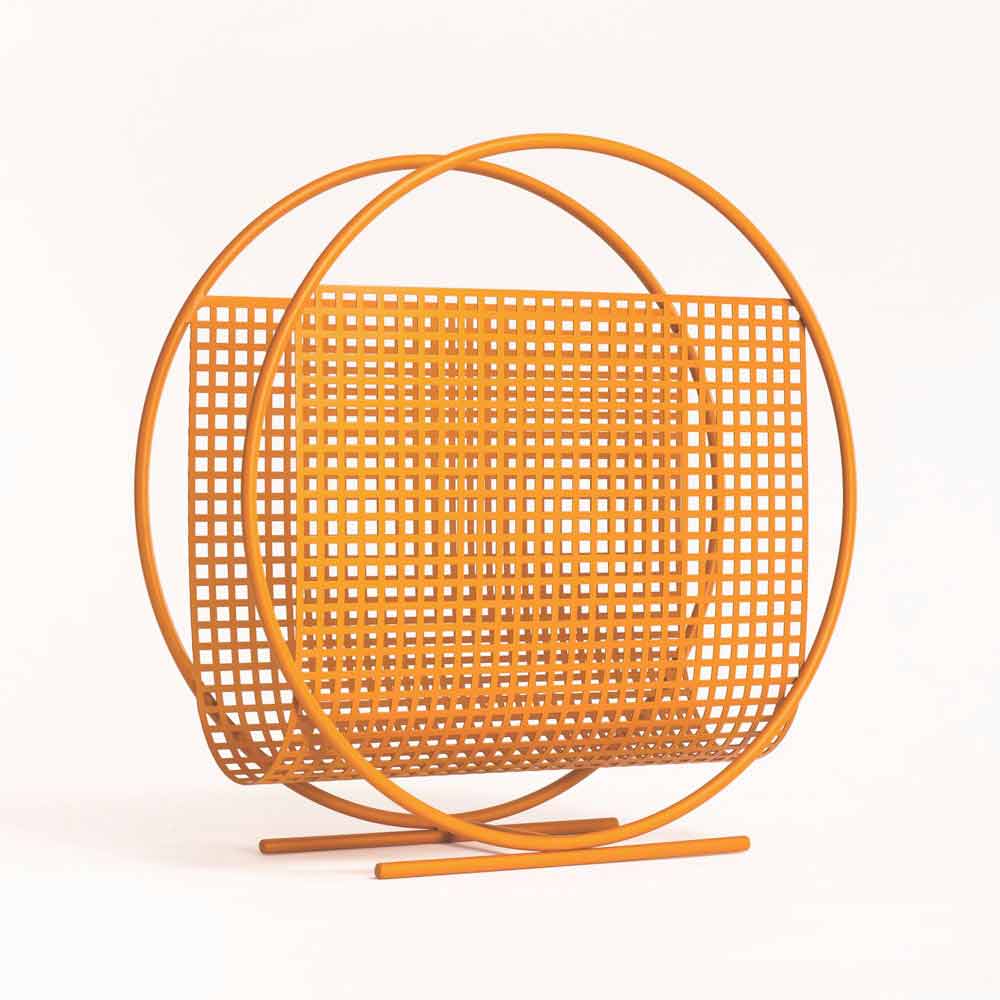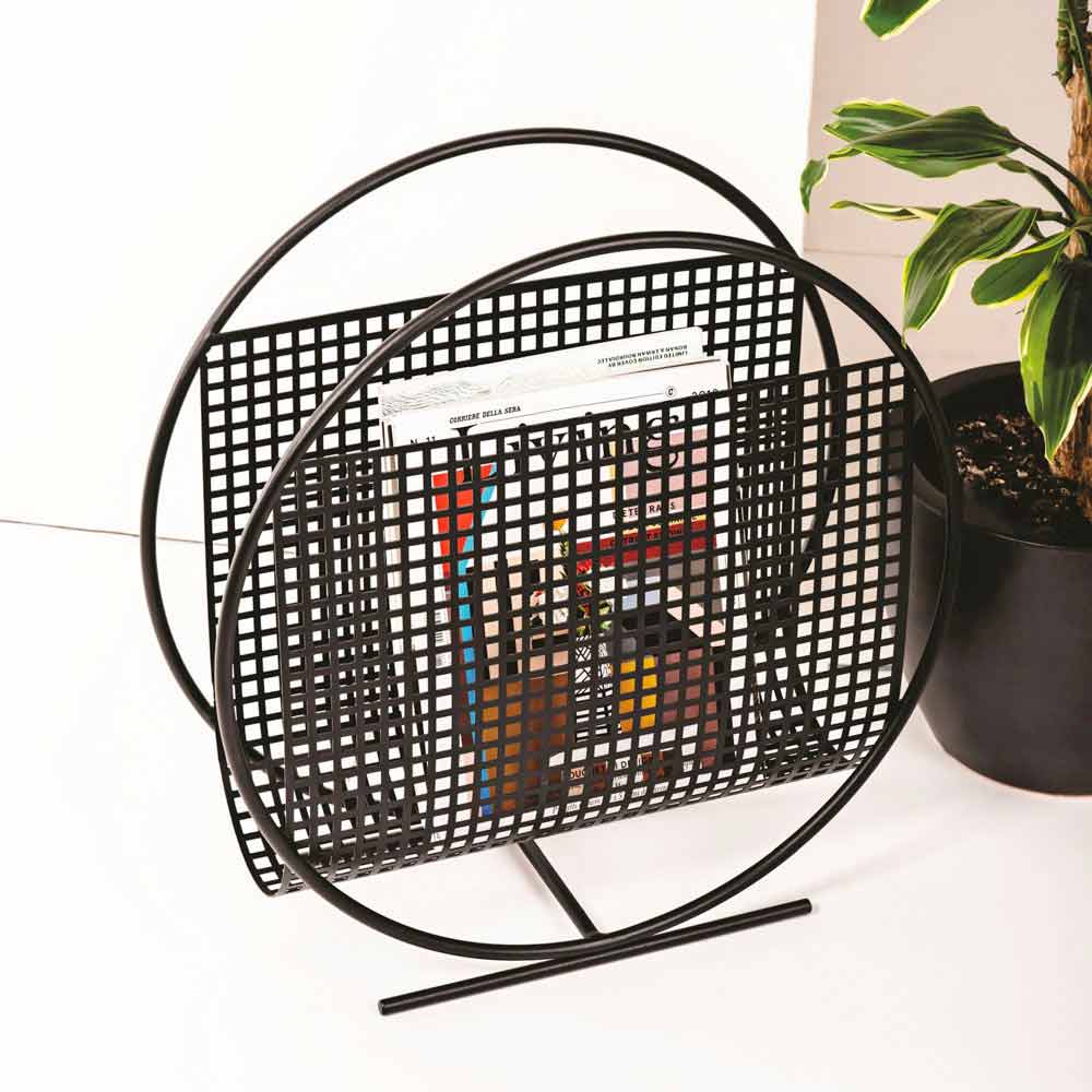Floor magazinerack entirely made in Italy in RAL painted steel characterized by the use of different geometric shapes such as the circle, the square and the line which, combined in a single product, help to create an elegant product that does not go unnoticed. Ideal to be placed in environments with a modern and colorful taste to give character and personality to the room thanks to a simple design element.