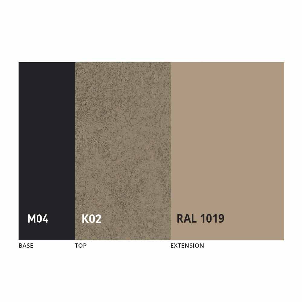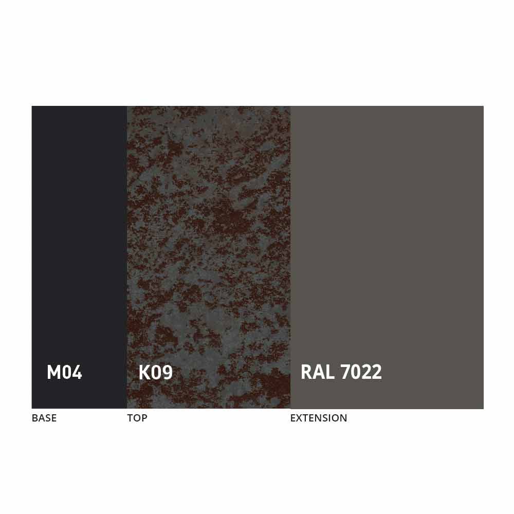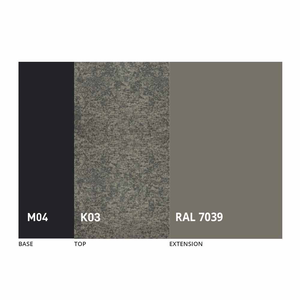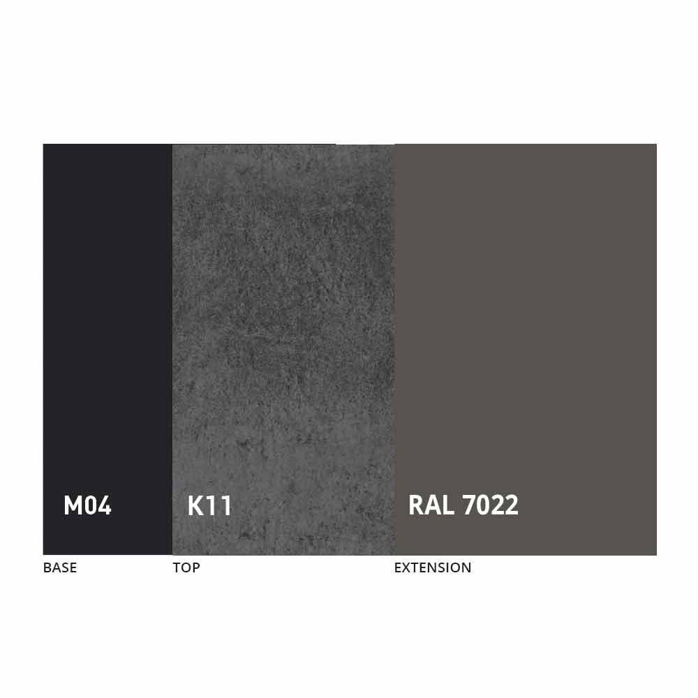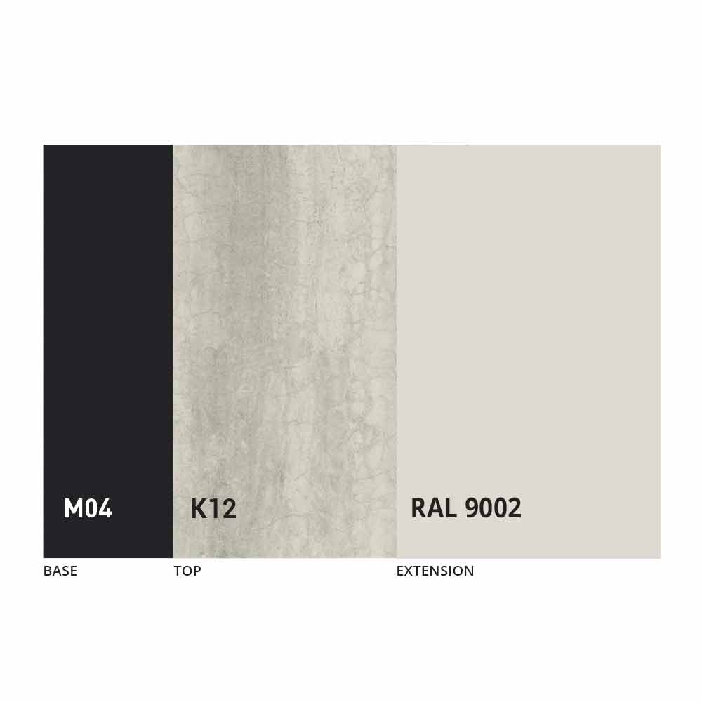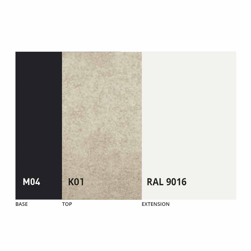 The top and base of the table can be customized with different materials and sample finishes or RAL lacquering. For information, contact us using the appropriate "