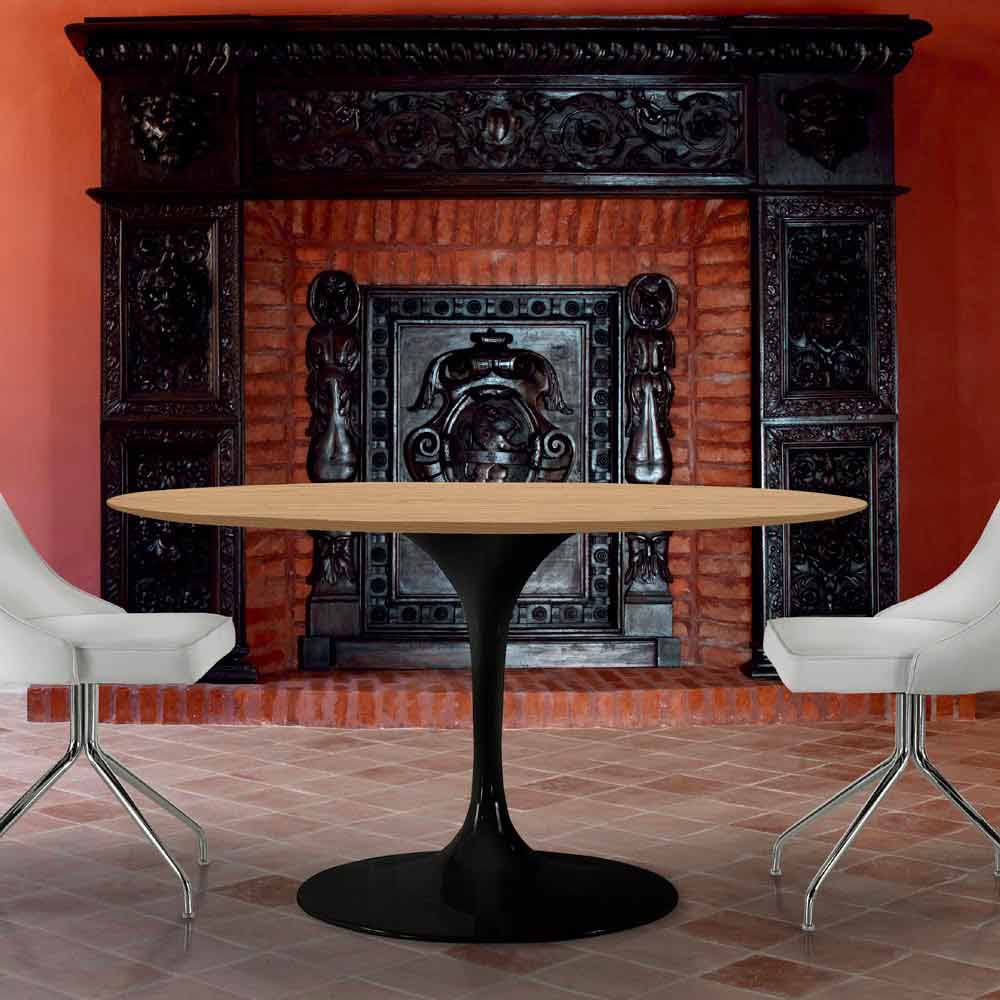 Dining table made in Italy with round top in HPL laminate and base in glossy lacquered cast aluminium . An exclusive and cutting-edge design characterizes this furnishing accessory with an elegant and refined soul capable of furnishing any environment with a modern taste with personality. Its aesthetics are underlined by curved features and soft shapes that enrich its style, giving the surrounding environment a unique and contemporary touch . Furthermore, thanks to the use of high quality raw materials, this article ensures a solid and resistant support surface while representing an original decorative element that completes the room, creating a wonderful harmony with the surrounding accessories.