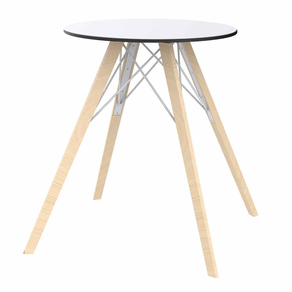 Round design dining table in ash wood and white or black hpl top, 3 sizes, 4 units.