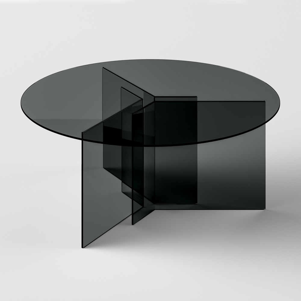 Dining table completely made of ultra- resistant glass with round top . A complement with a refined character that comes from a 100% Made in Italy production process thanks to skilled craftsmen expert in glass processing, a single material that gives life to a precious design table.