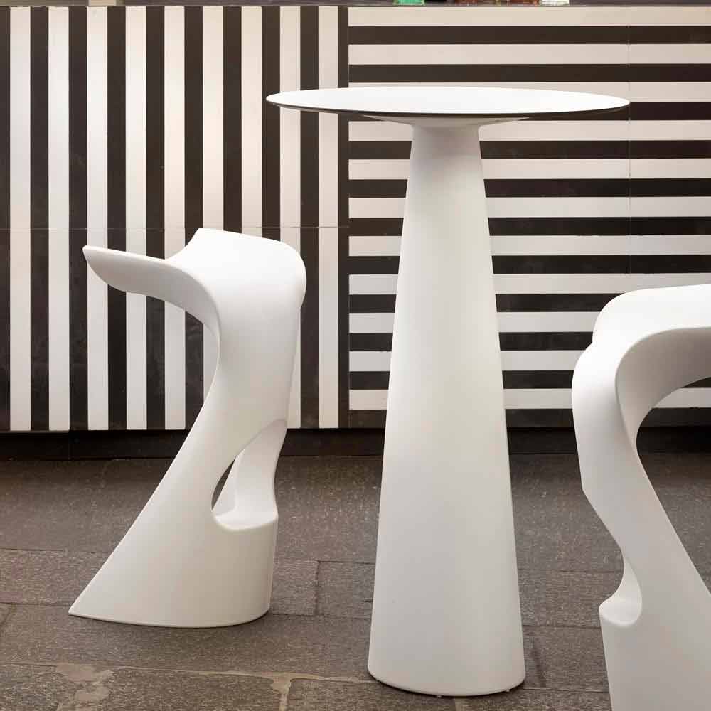 Hoplà (H110) is a round table with a modern and contemporary design, perfect for elegantly furnishing events or minimalist-style contracts. Thanks to its very simple and essential lines, it lends itself to both indoor and outdoor settings, resulting in an informal but still effective piece of furniture.