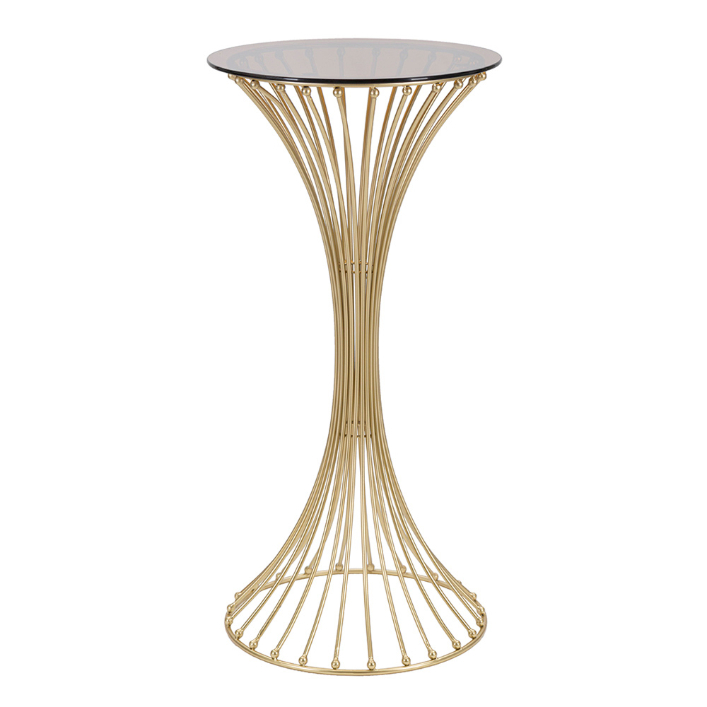 This high coffee table is a distinct example of elegance and contemporary design . The golden base rises in an elegant tangle of lines that recall the thin branches of a plant, supporting a circular glass top. The combination of glass and golden iron not only enhances the visual beauty but also speaks to the quality of the materials, ensuring durability and stability .
