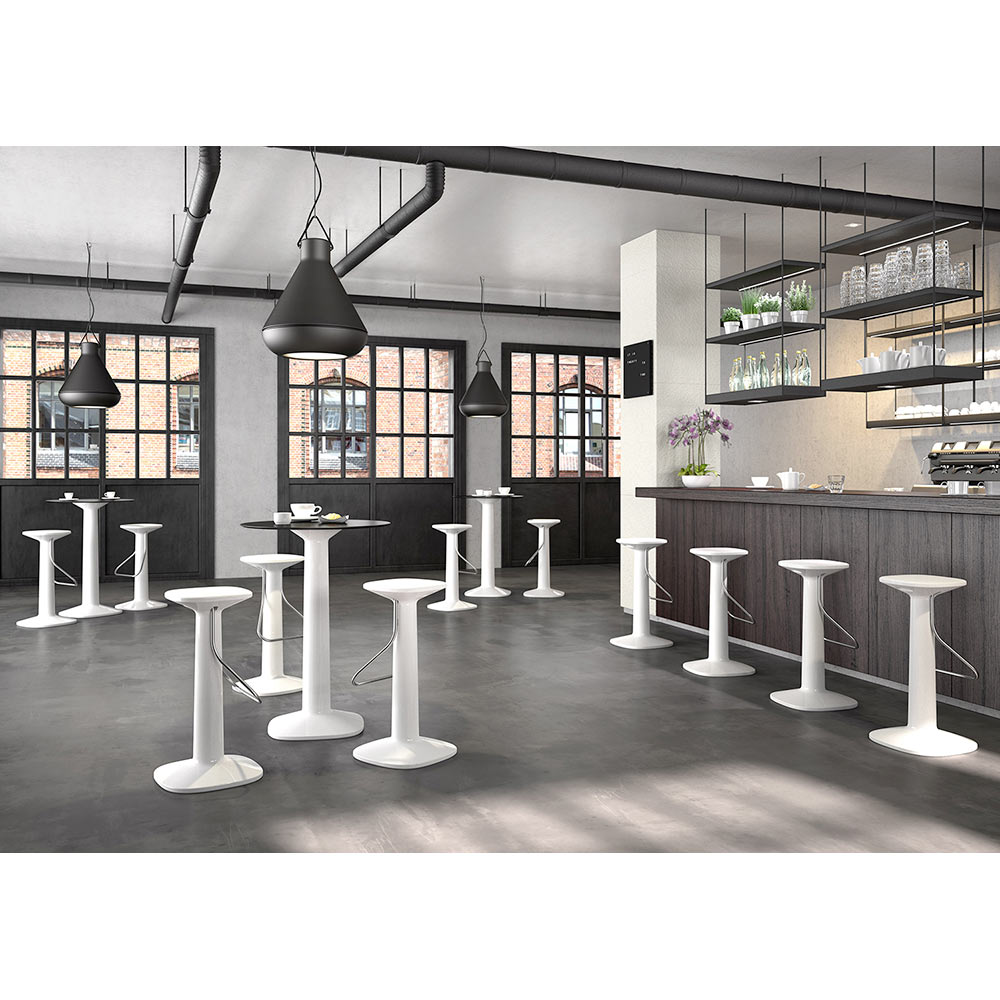 This high table is entirely produced in Italy with materials chosen ideal to ensure a stable, robust and high quality final product. The top is made of HPL while its structure is in polyethylene in a matte finish, which provides versatility and resistance to heat, sun and shocks, while making the product perfect for use in outdoor environments. Ideal in combination with high stools to complete the furnishing of environments with a contemporary and minimal design, giving character and personality to the room.