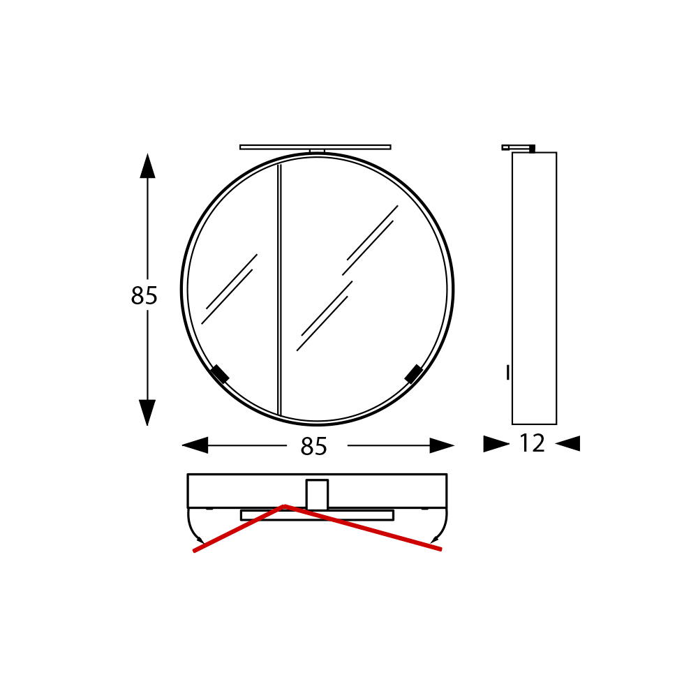 This elegant cabinet is a piece of furniture that blends style and utility . This space-saving solution offers a modern circular design with two mirrored doors that open to reveal a spacious interior, ideal for neatly storing all your bathroom accessories.