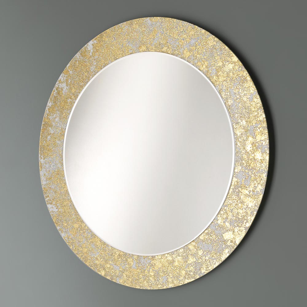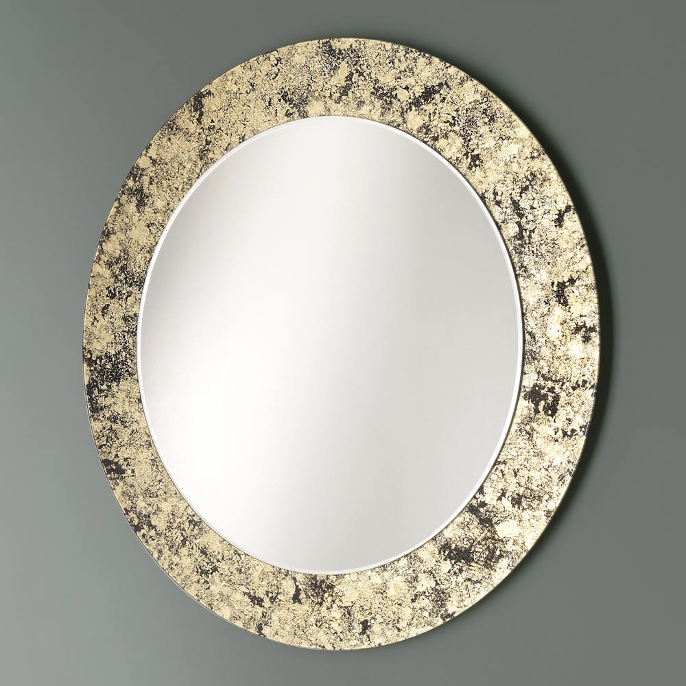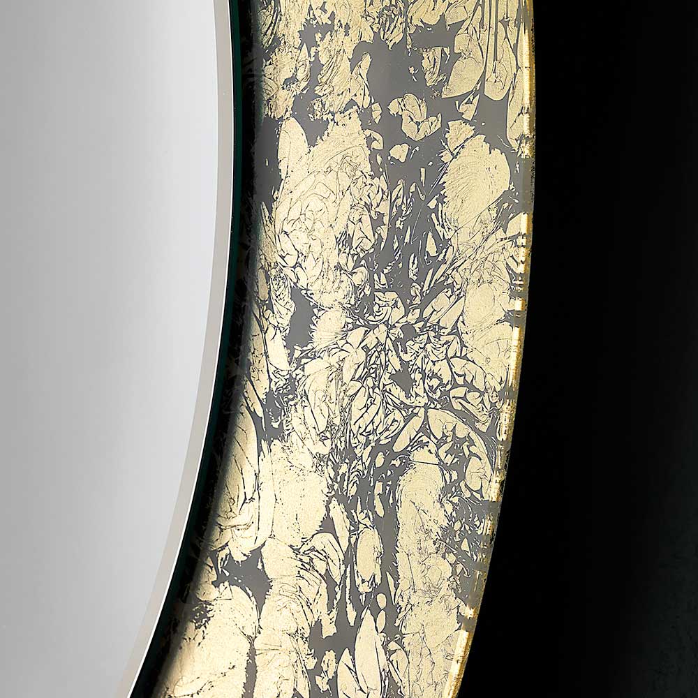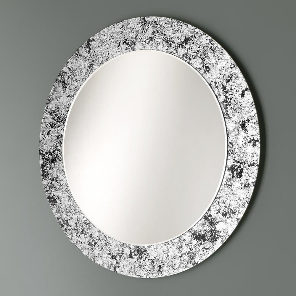 Round decorative wall mirror with leaf decorated glass frame 4 finishes made in Italy.