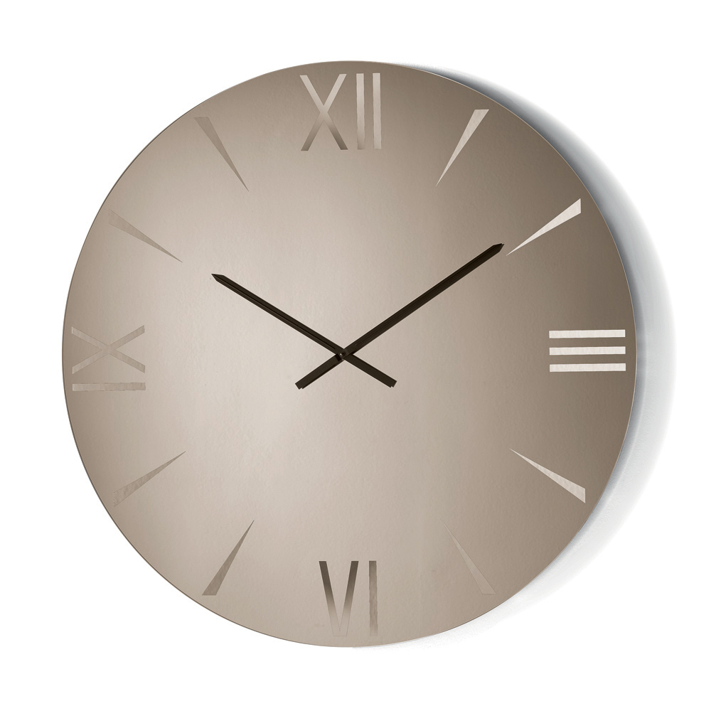 An elegant , Made in Italy designer wall clock , ideal for enhancing spaces like the living room , entryway , or dining area . Its contemporary style transforms the function of time into a decorative element capable of enriching the wall with elegance and personality.