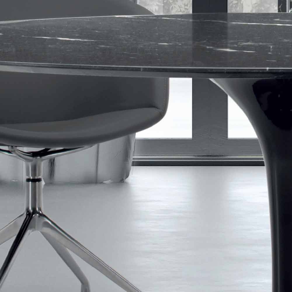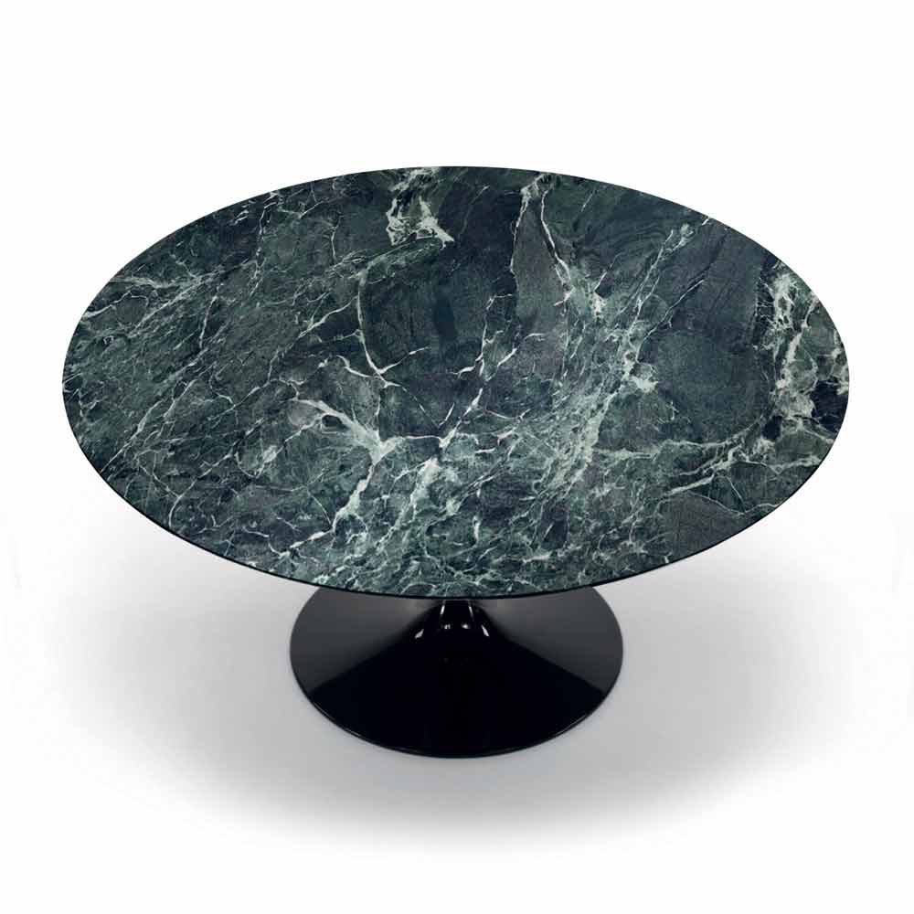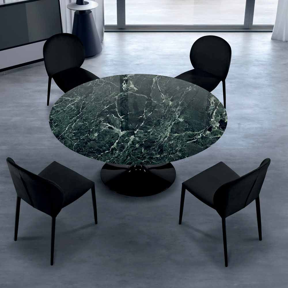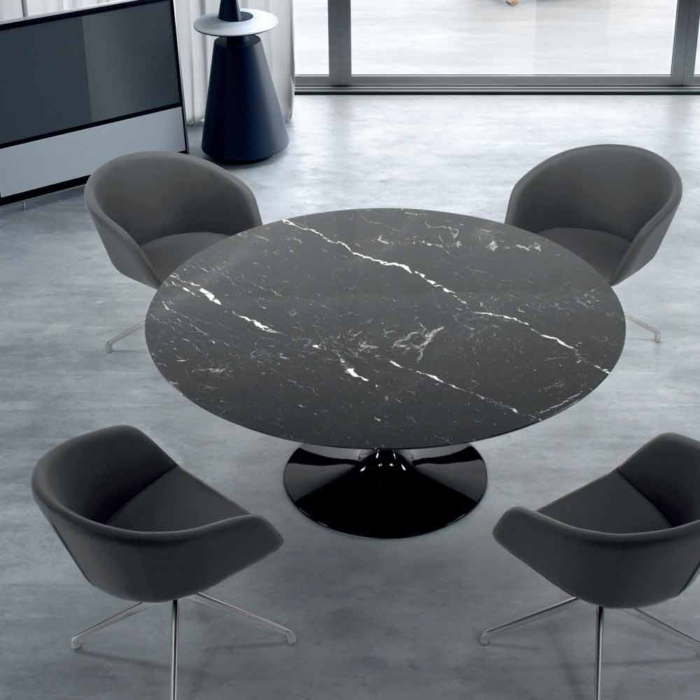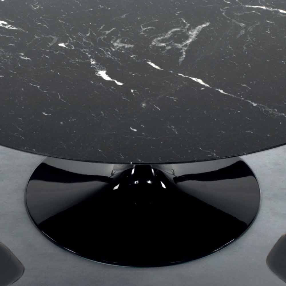 Modern round table with Carrara or Nero Marquinia marble top handcrafted in Italy.