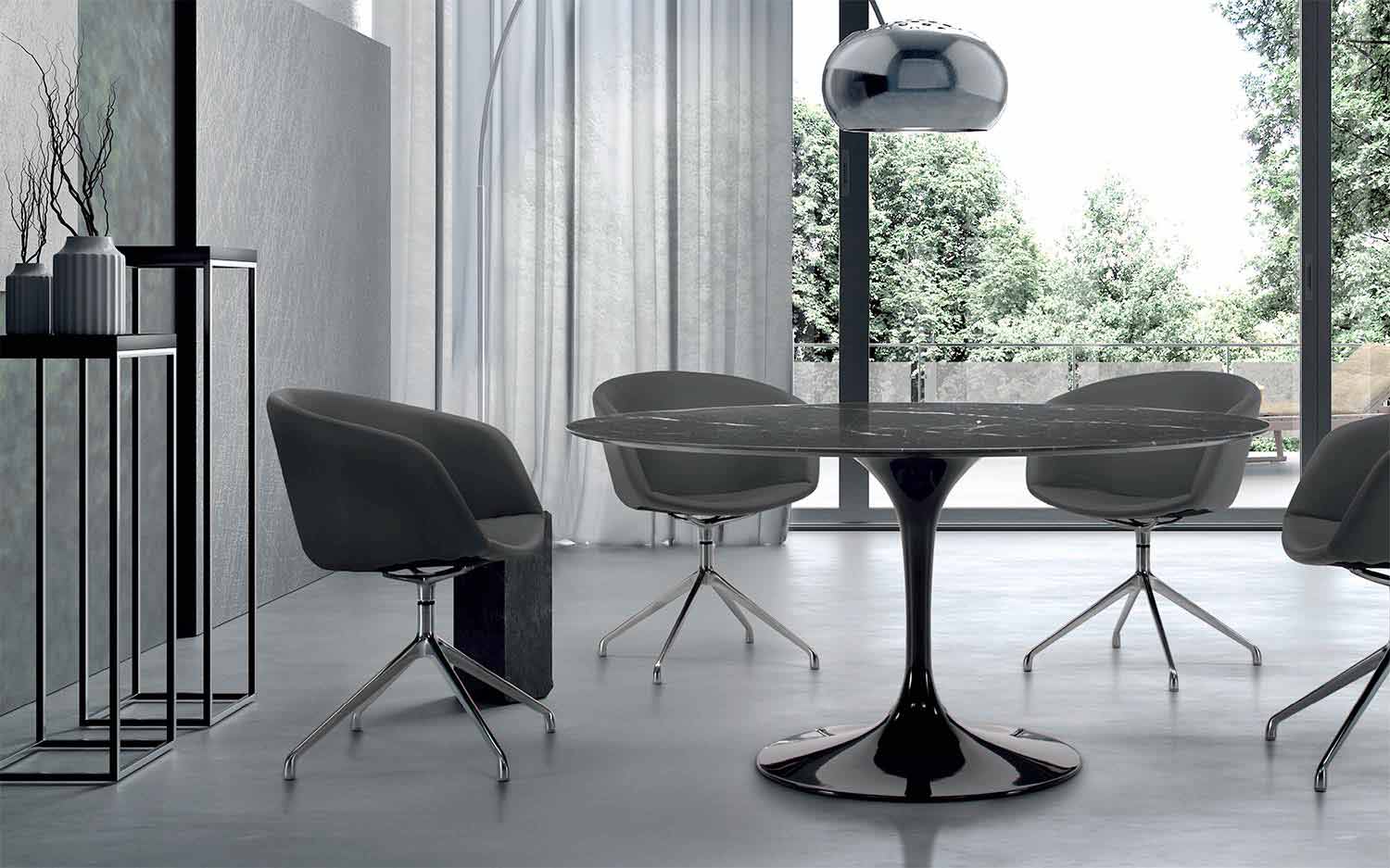 The table base can be customized with different sample finishes or RAL lacquers.