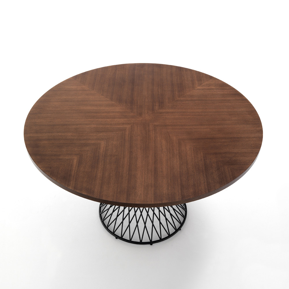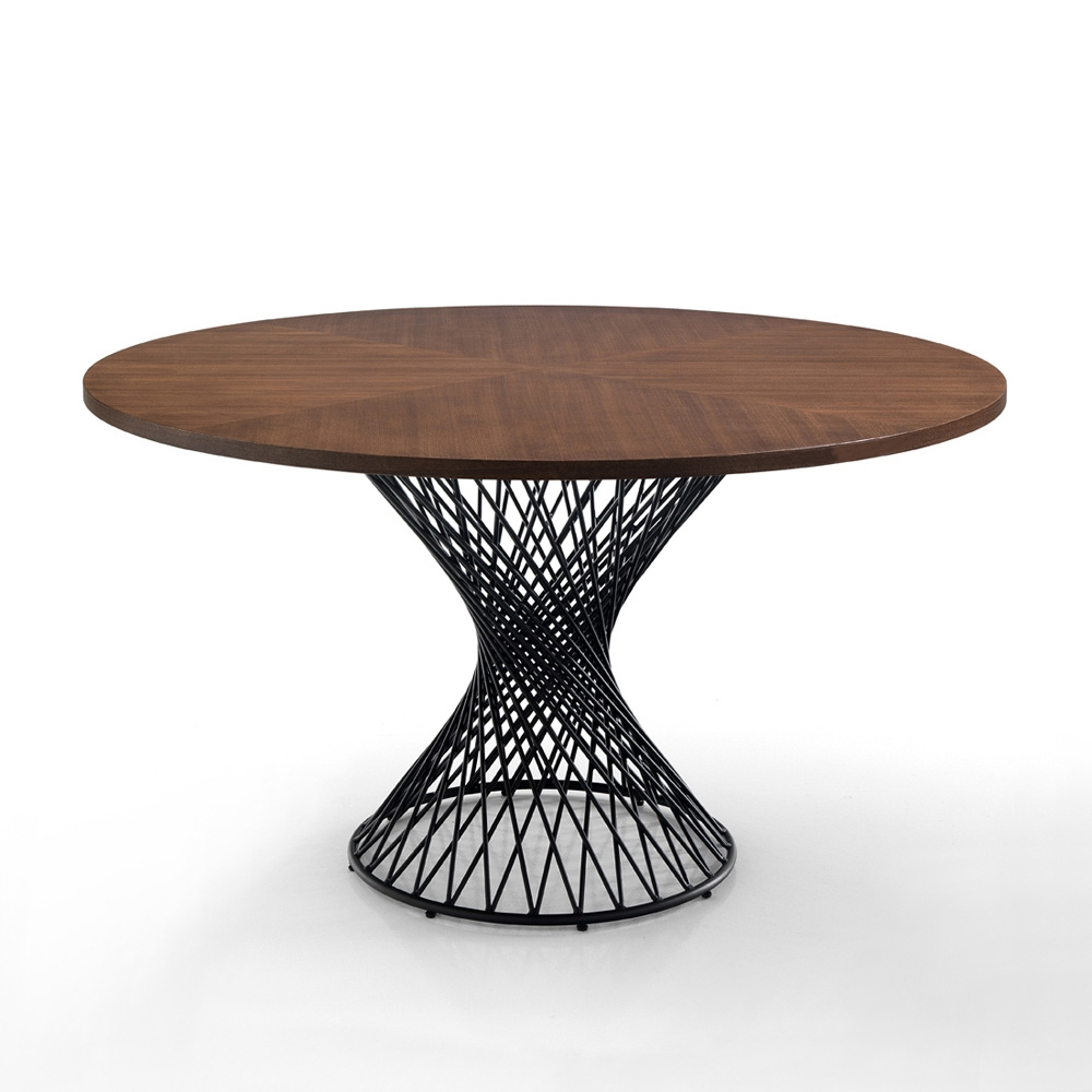 Round indoor table with top in MDF veneered in dark walnut finish th. 25 mm and base made of matt black metal. This product is the perfect idea for all those who want to give a touch of modernity and freshness to the room, be it a living room, a kitchen or a contract environment. The materials chosen for construction are top quality to guarantee the customer a table that is not only beautiful to look at but also functional and resistant .