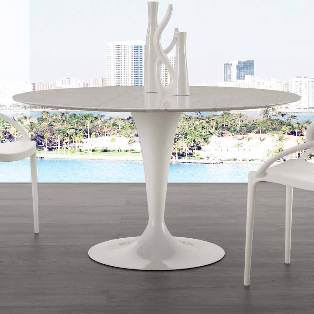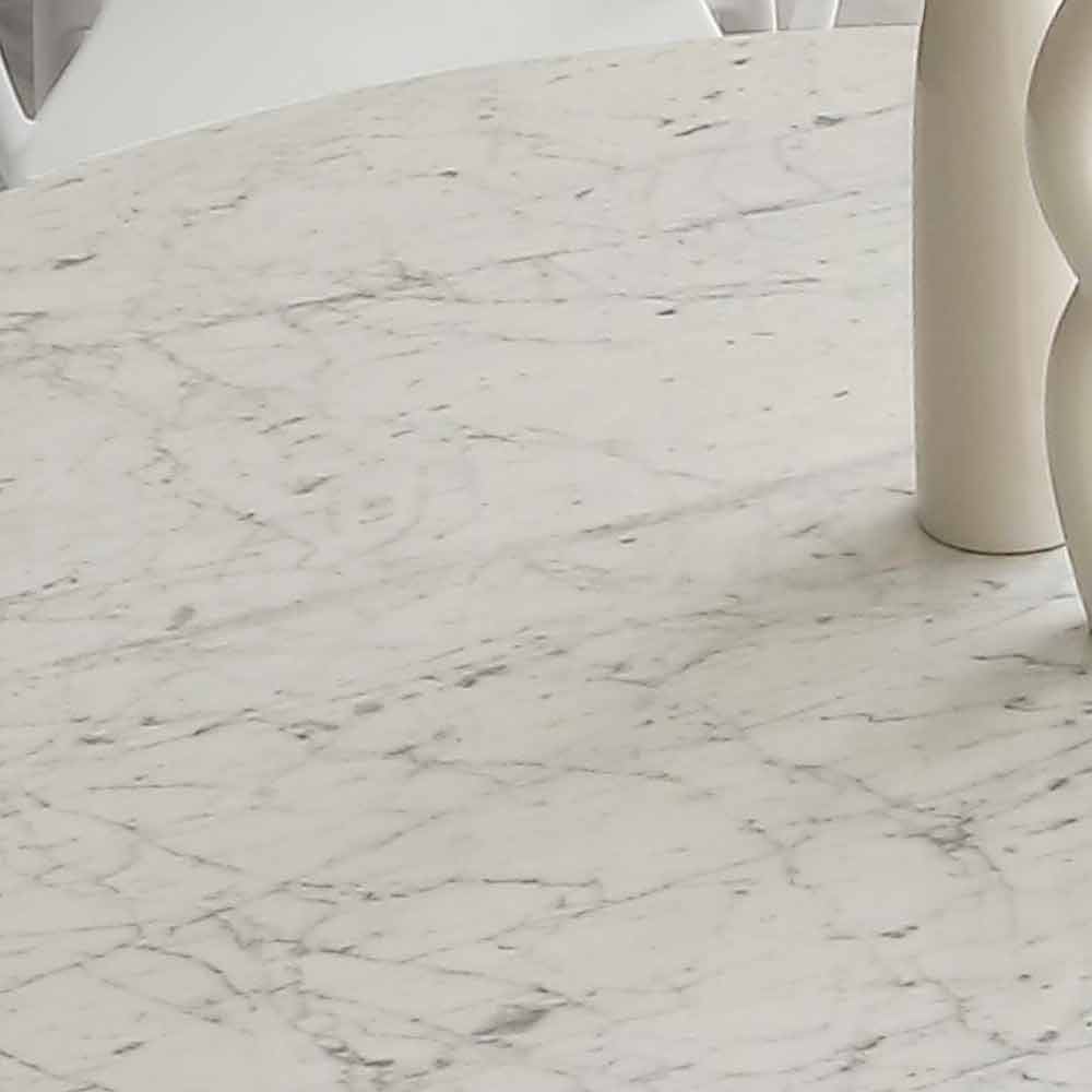 Very practical and versatile, Rimini is made with a 20 mm thick carrara marble top and a white painted steel base.