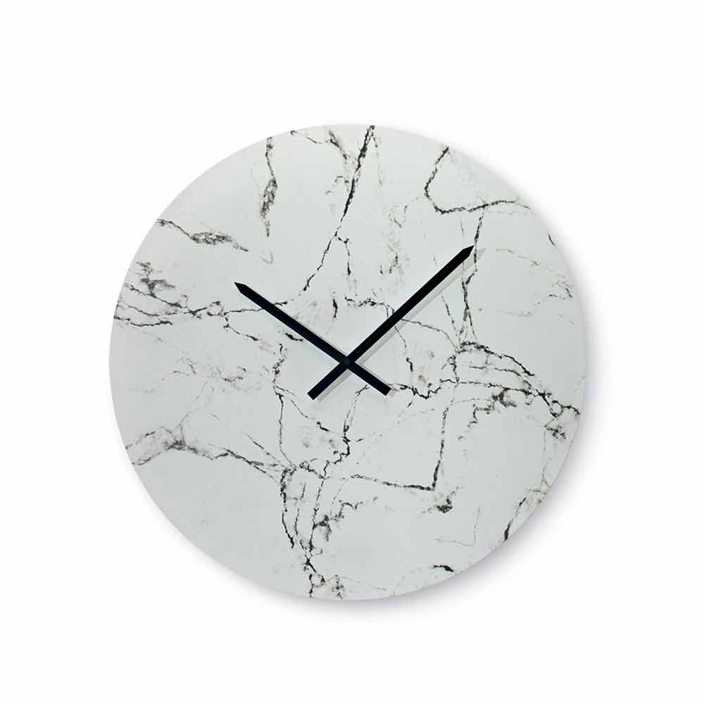 Round designer wall clock in marble effect finish Made in Italy.