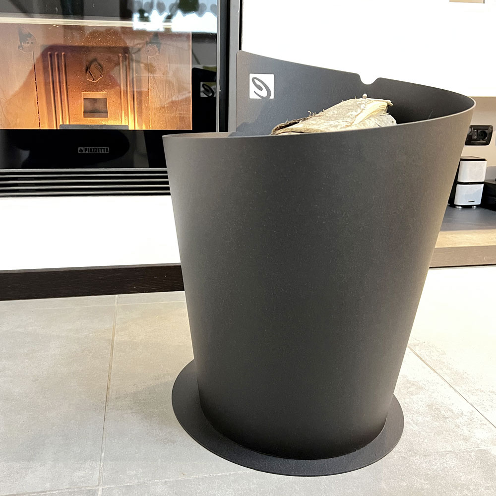 Portalegna for design fireplace made of non-toxic ality of powder-coated steel grades. Designed, designed and handcrafted in Italy, with the aim of highlighting not only the usefulness of the log holder itself, but also its aesthetic value.