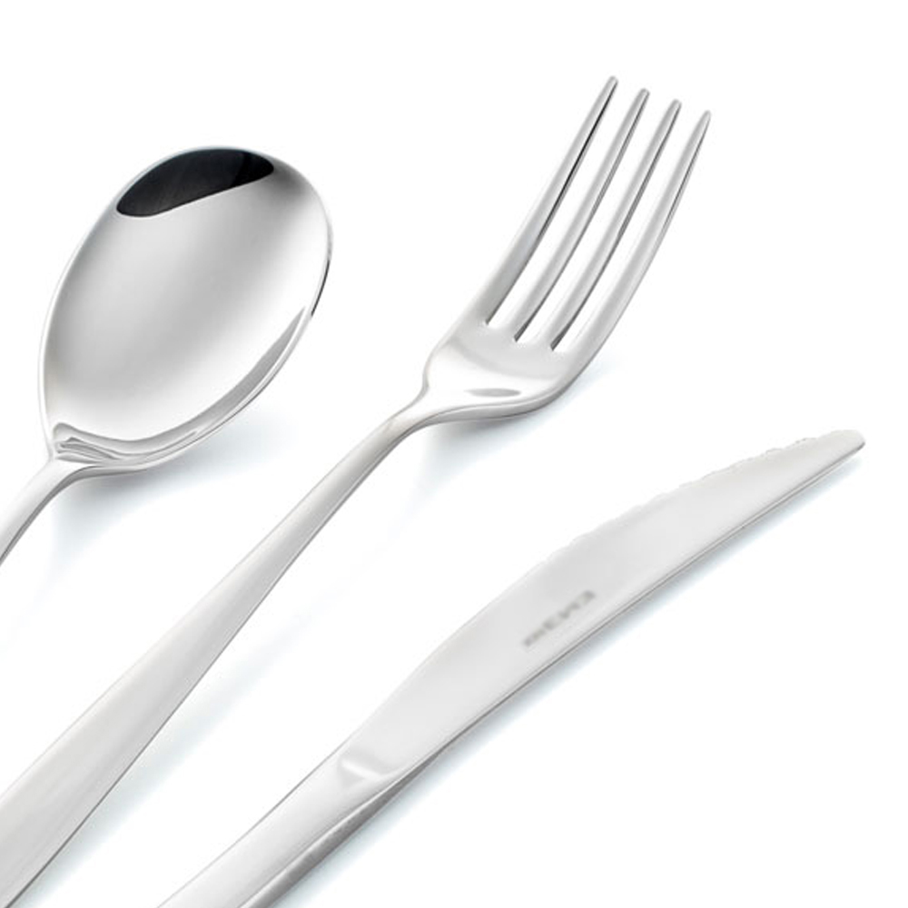 It is a collection of 18/10 stainless steel cutlery, that is with 18% chromium and 10% nickel, which guarantee excellent resistance to corrosion and ease of cleaning with an excellent hygienic coefficient.