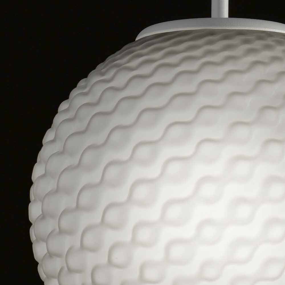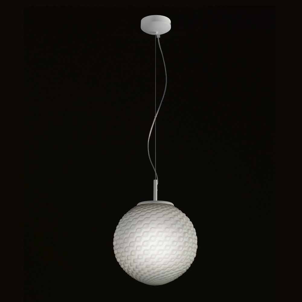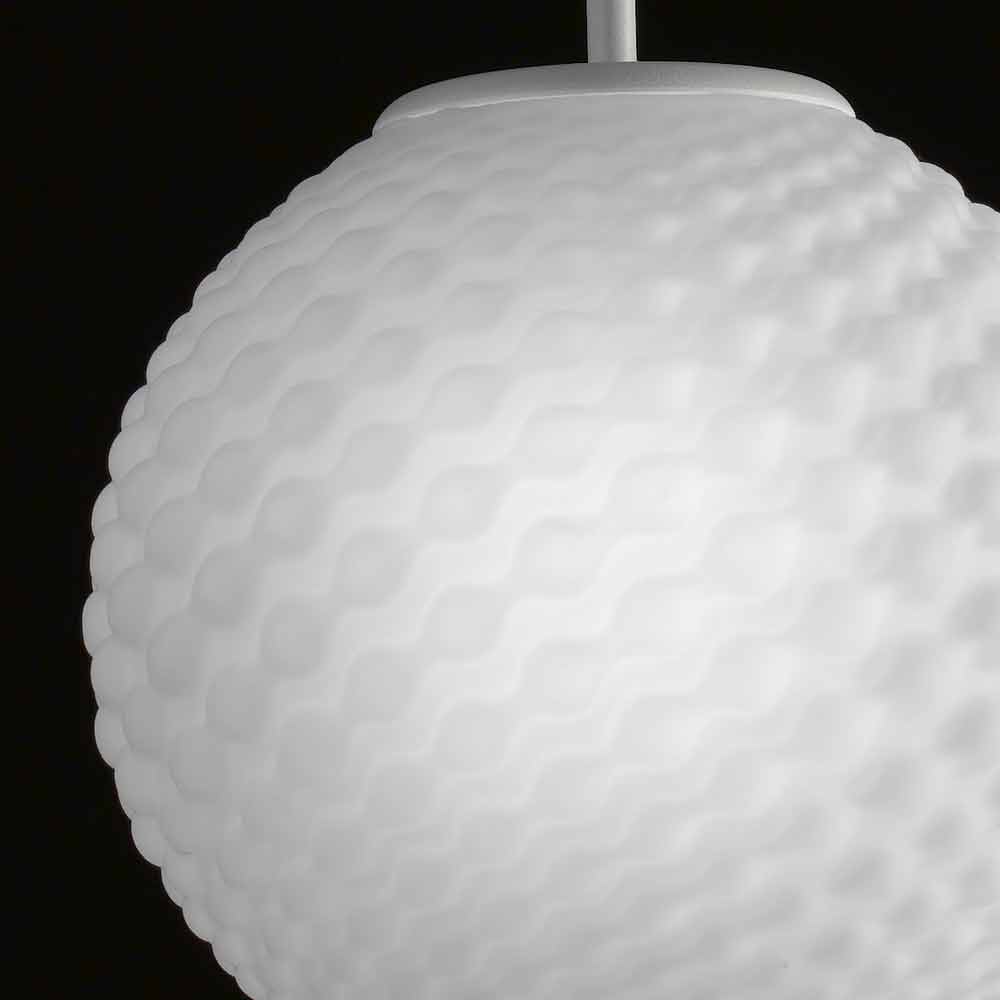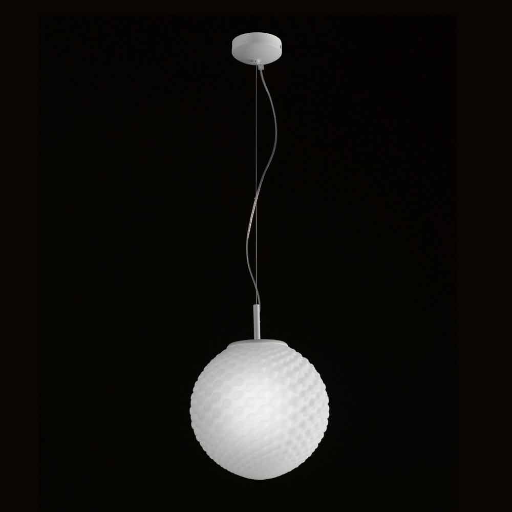 Rich collection of blown glass lamps with a specialised honeycomb relief manufacture that adorns the glass itself. The glass shade can be cylindrical in two sizes and also in a spherical one. Moreover, it is available in three satin colours: white, amber and smoked.