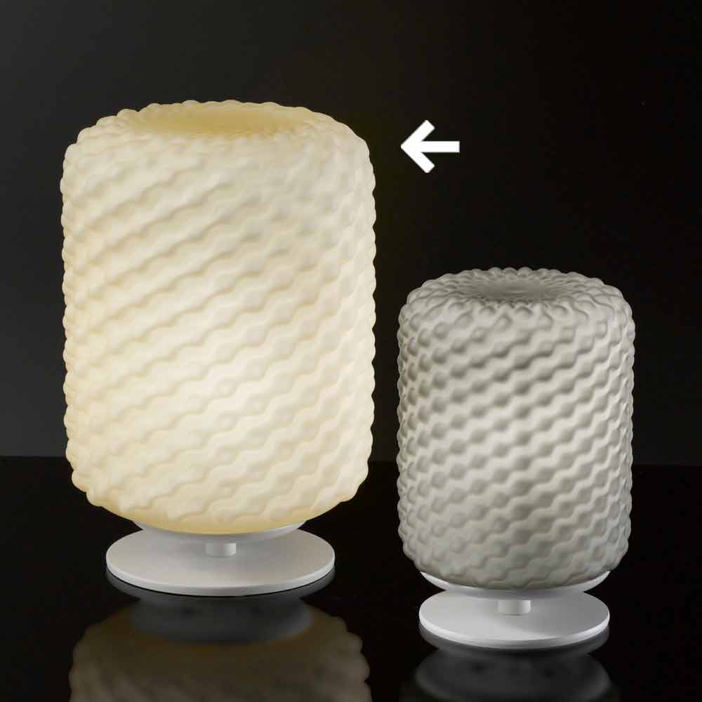 Rich collection of blown glass lamps with a specialised honeycomb relief manufacture that adorns the glass itself. The glass shade can be cylindrical in two sizes and also in a spherical one. Moreover, it is available in three satin colours: white, amber and smoked.