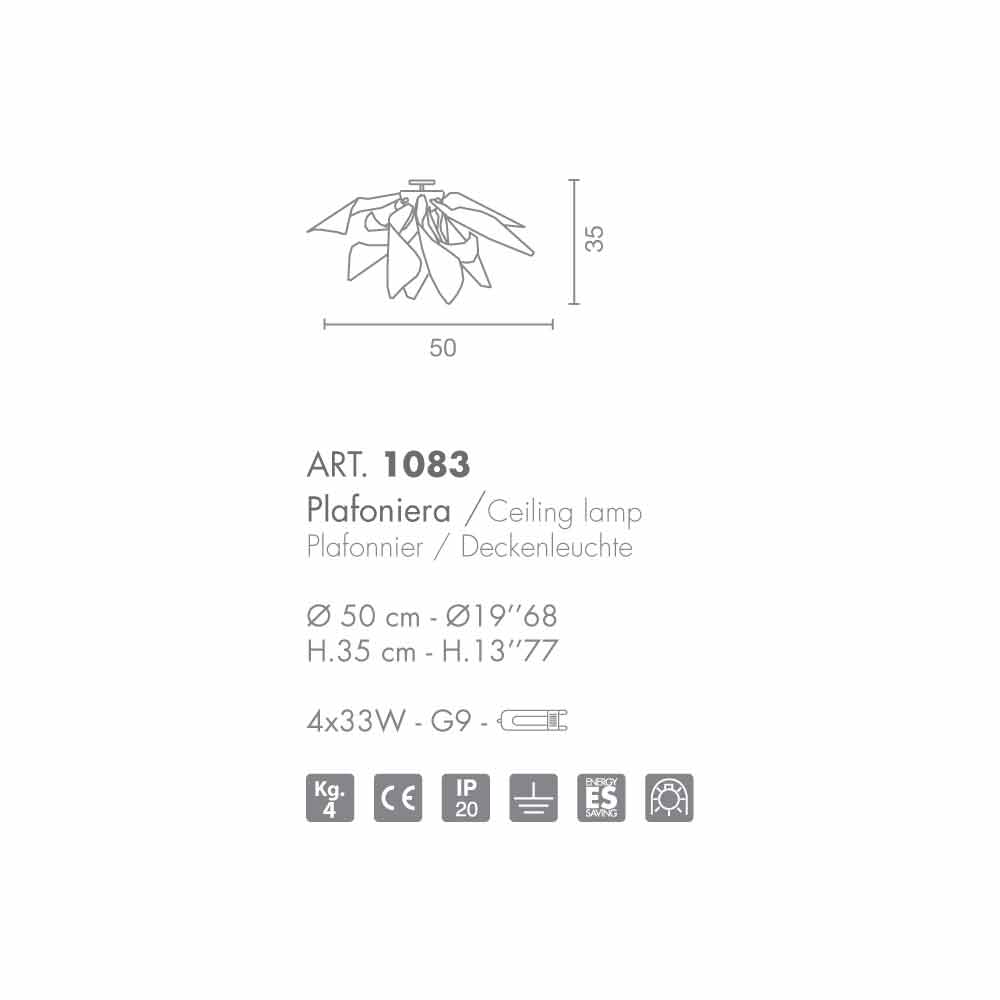 Selene Ginger modern metal ceiling lamp, made in Italy, Ø50 H35cm.