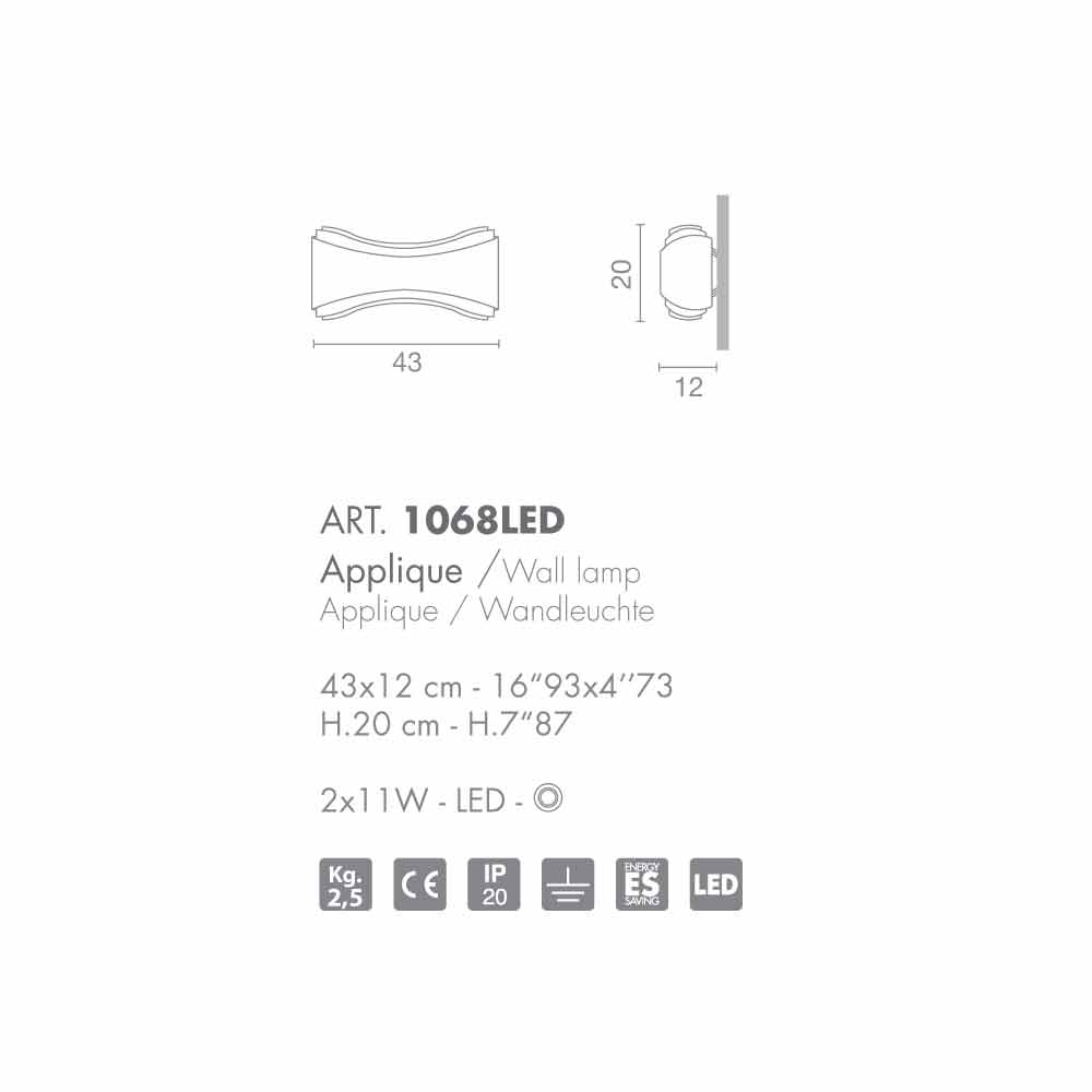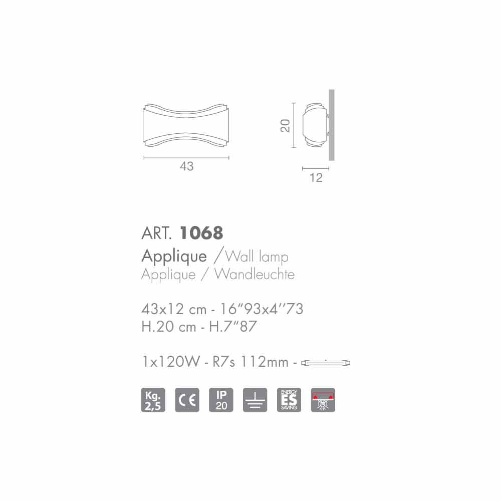 Selene Ionica wall lamp, made in Italy 43x12 H 20cm, glass and steel.